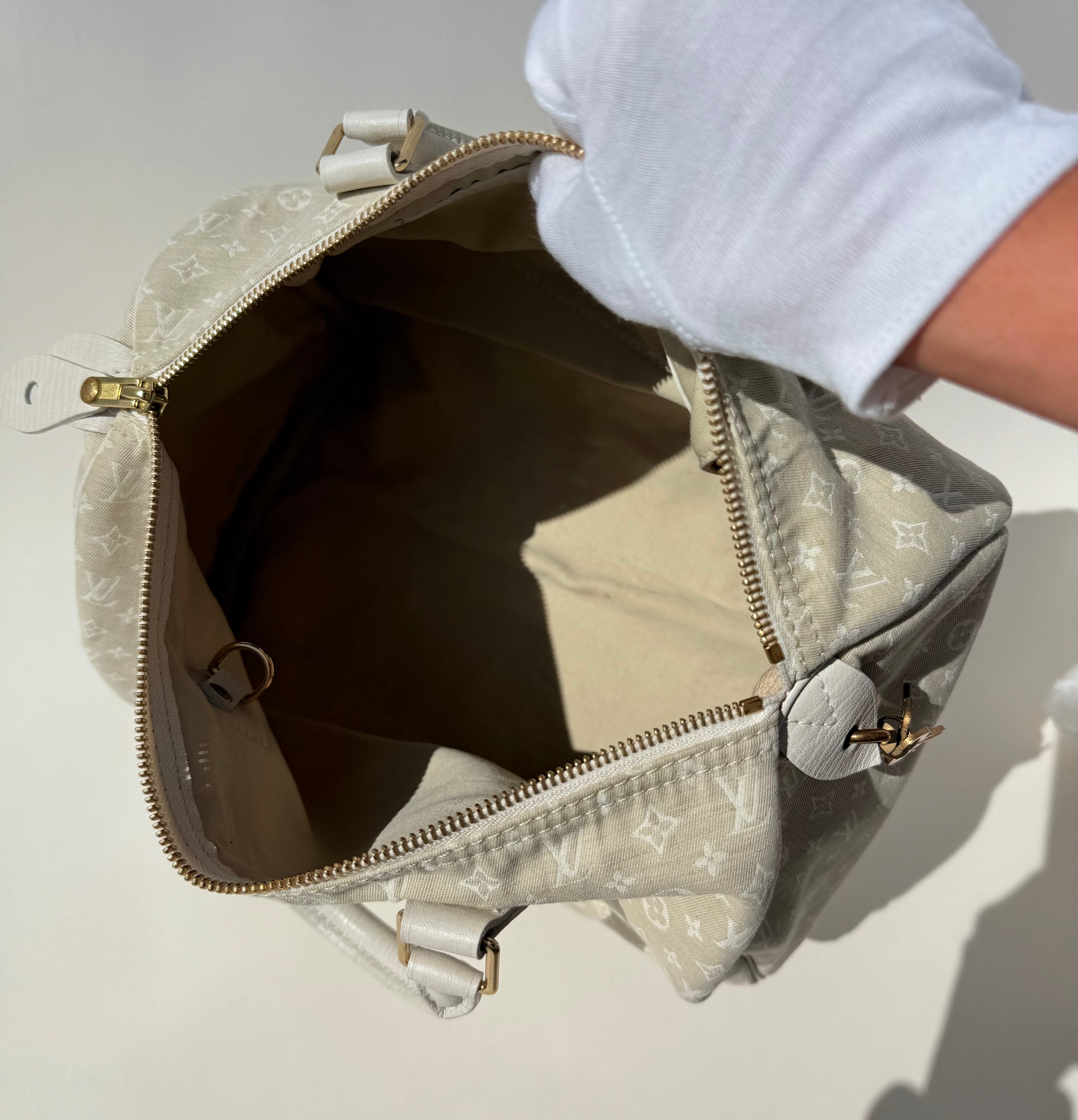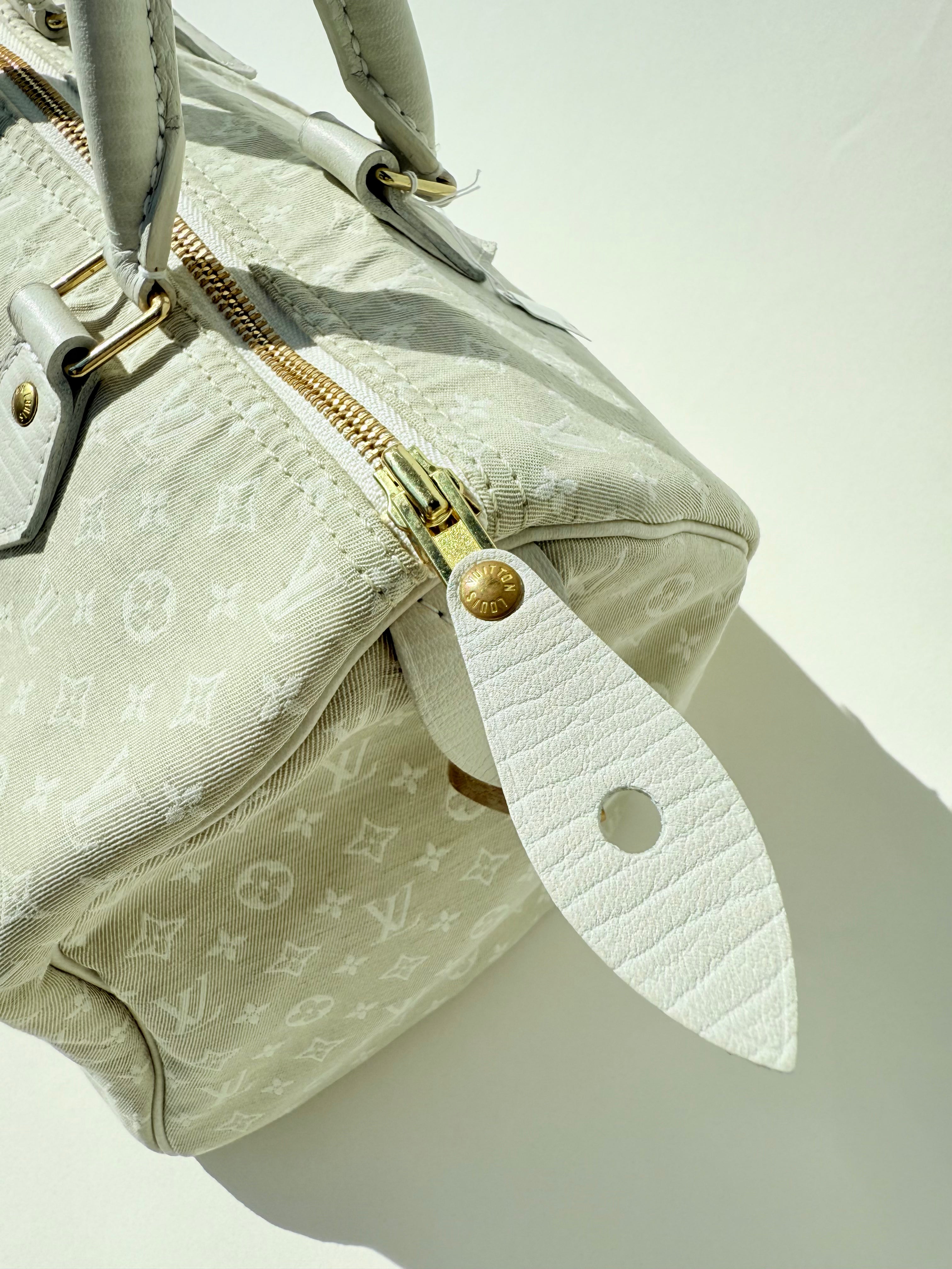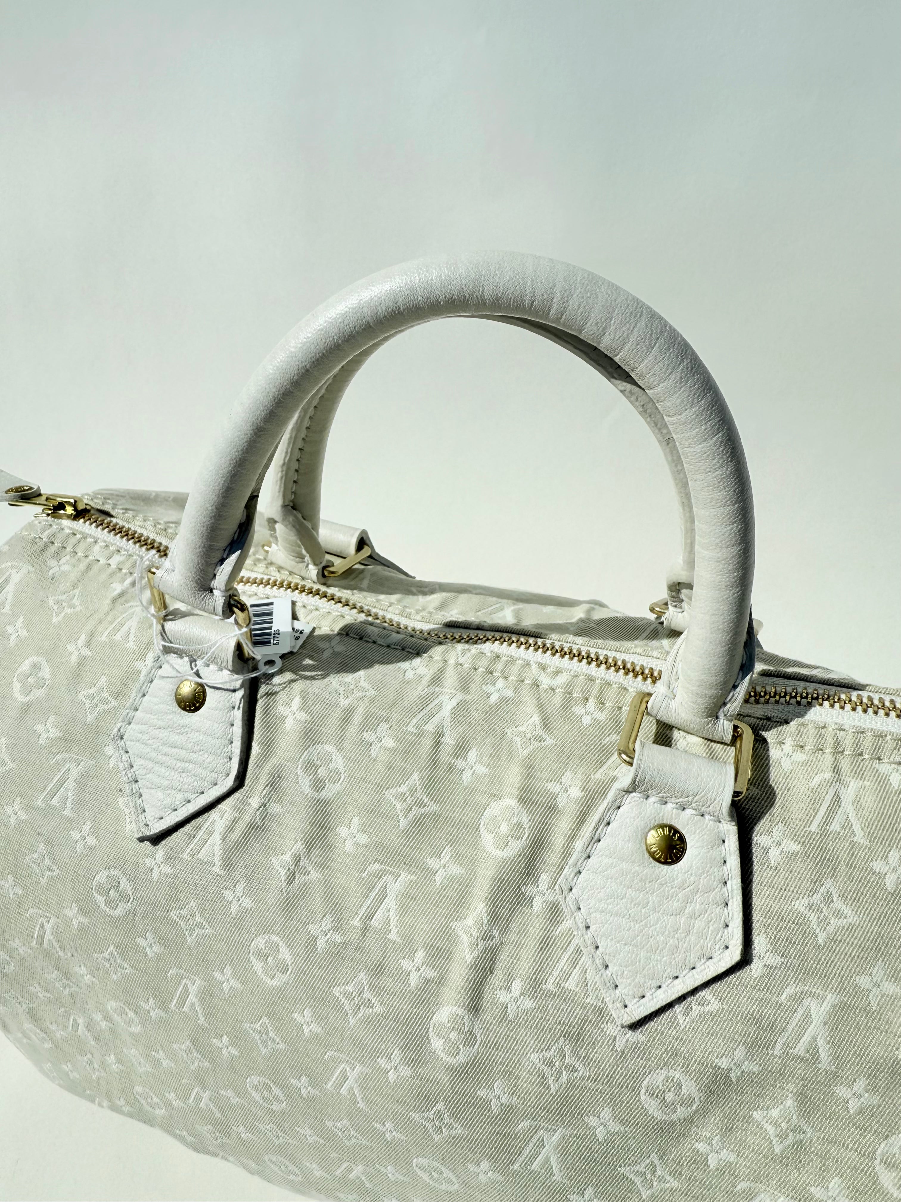 LOUIS VUITTON Beige Idylle Ivory Denim Mini Lin Canvas Monogram Speedy 30 cloth handbag Pre-Loved