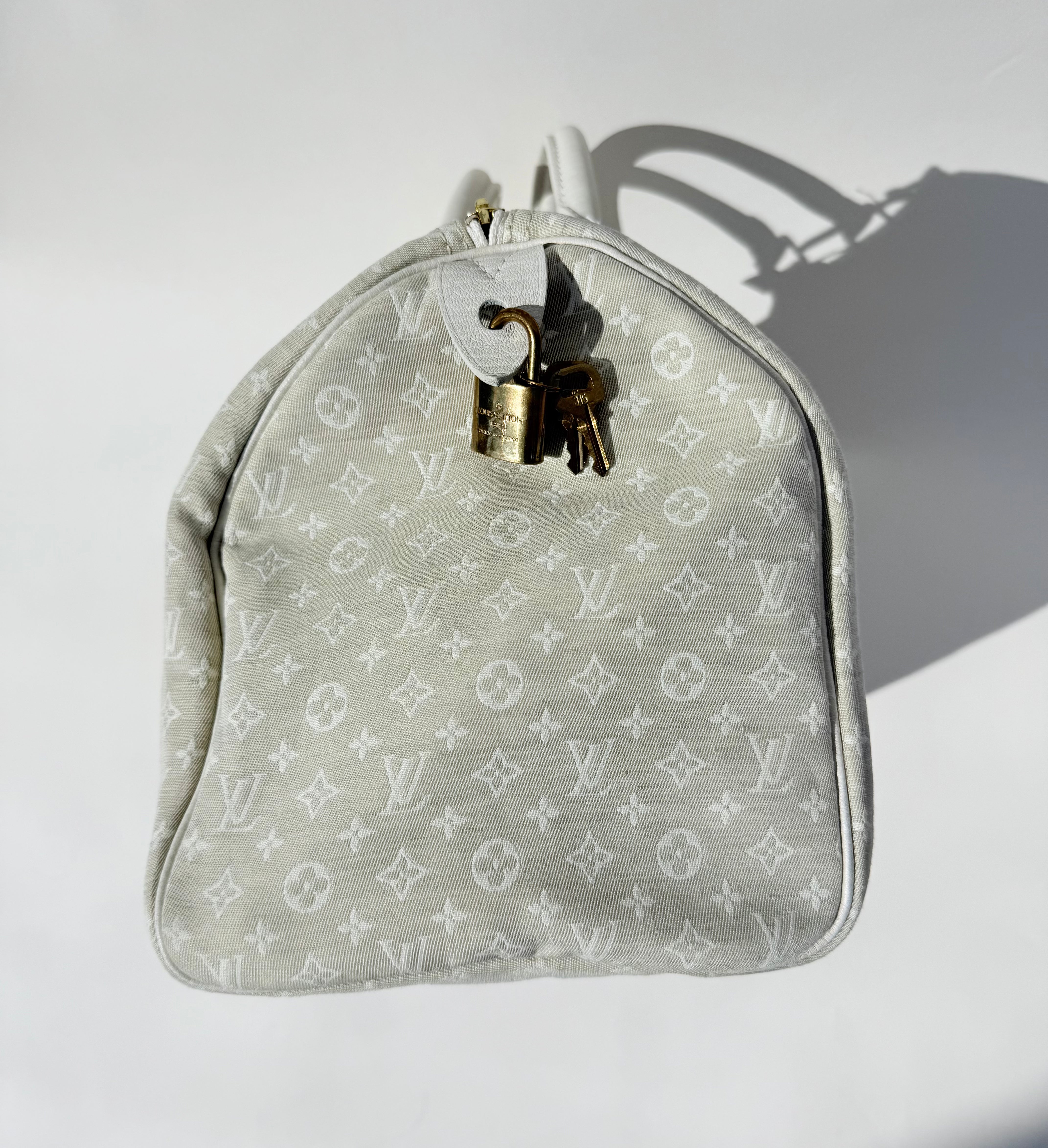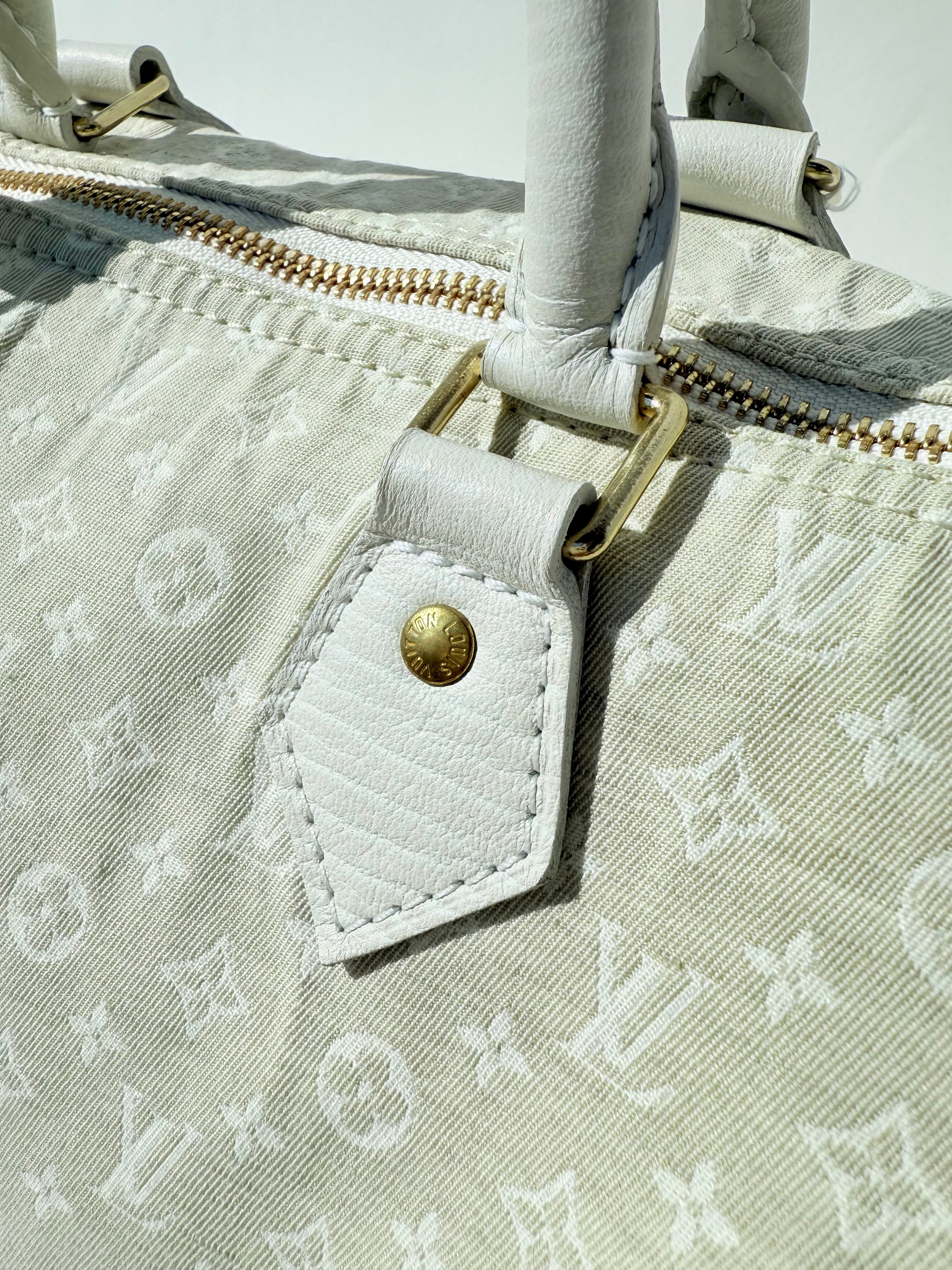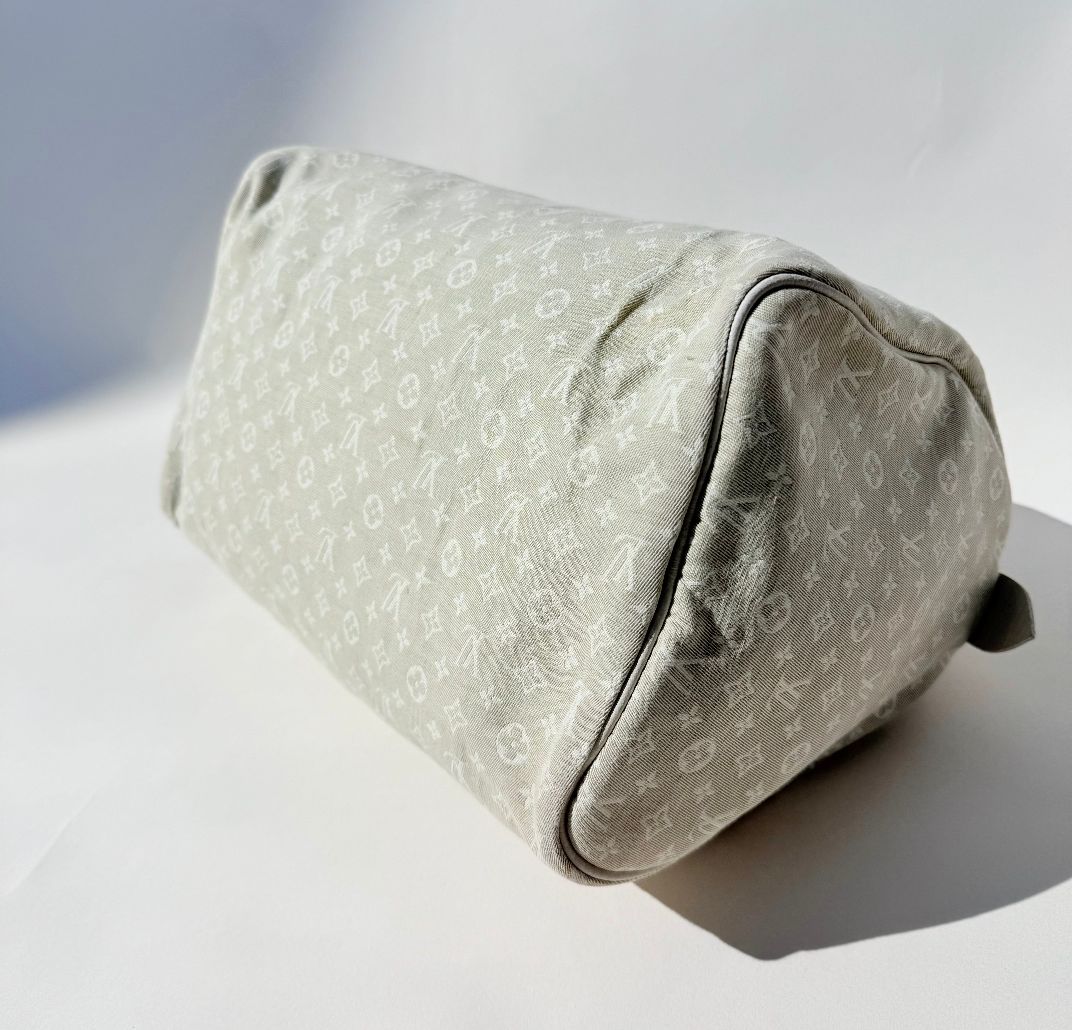 LOUIS VUITTON Beige Idylle Ivory Denim Mini Lin Canvas Monogram Speedy 30 cloth handbag Pre-Loved