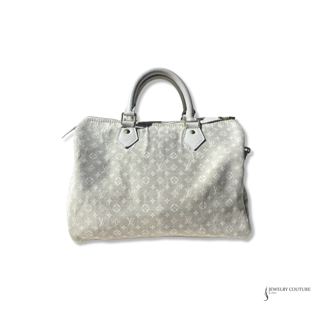 LOUIS VUITTON Beige Idylle Ivory Denim Mini Lin Canvas Monogram Speedy 30 cloth handbag Pre-Loved