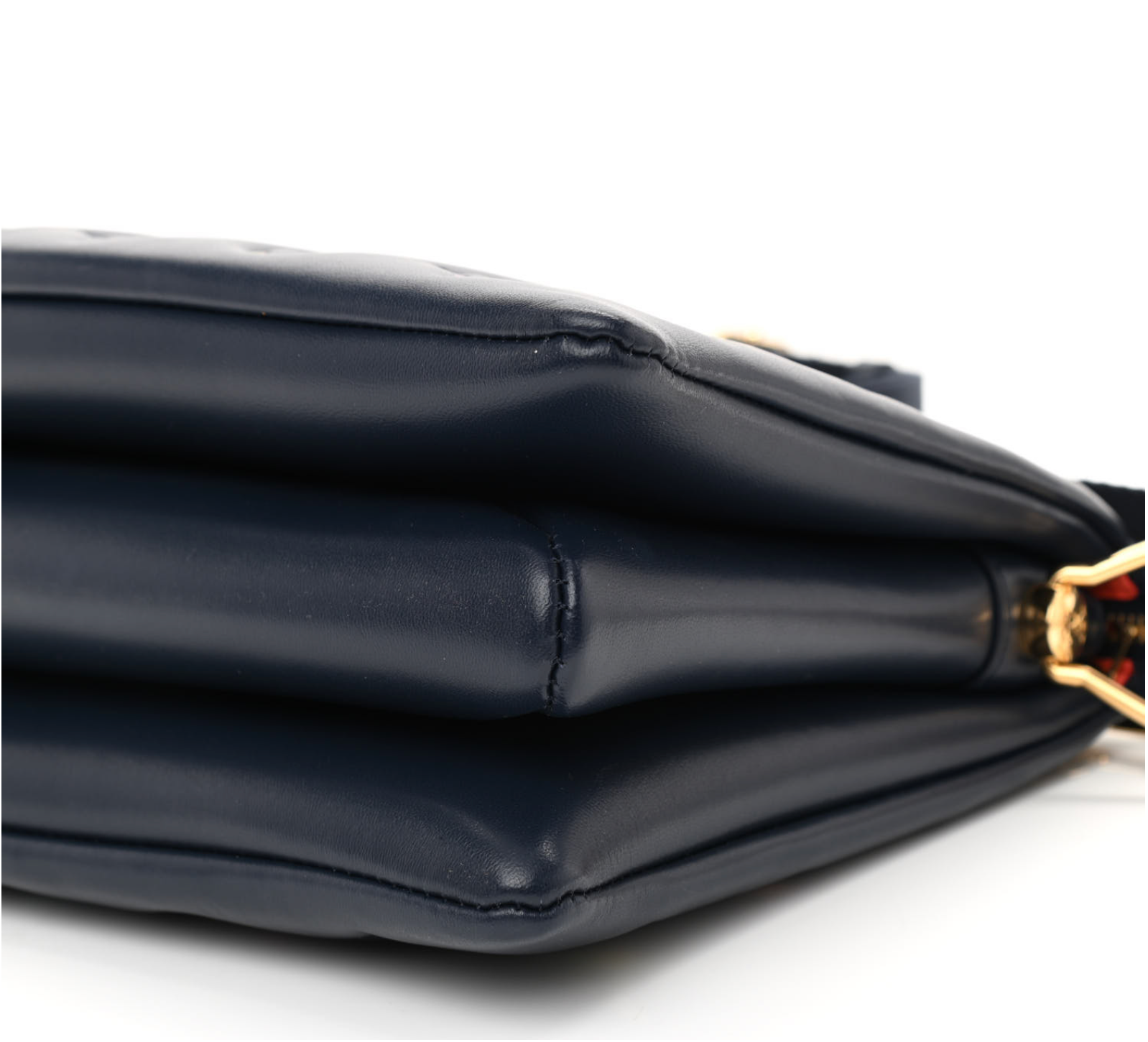 LOUIS VUITTON Lambskin Embossed Monogram LV Garden Coussin PM Navy Pre-Loved