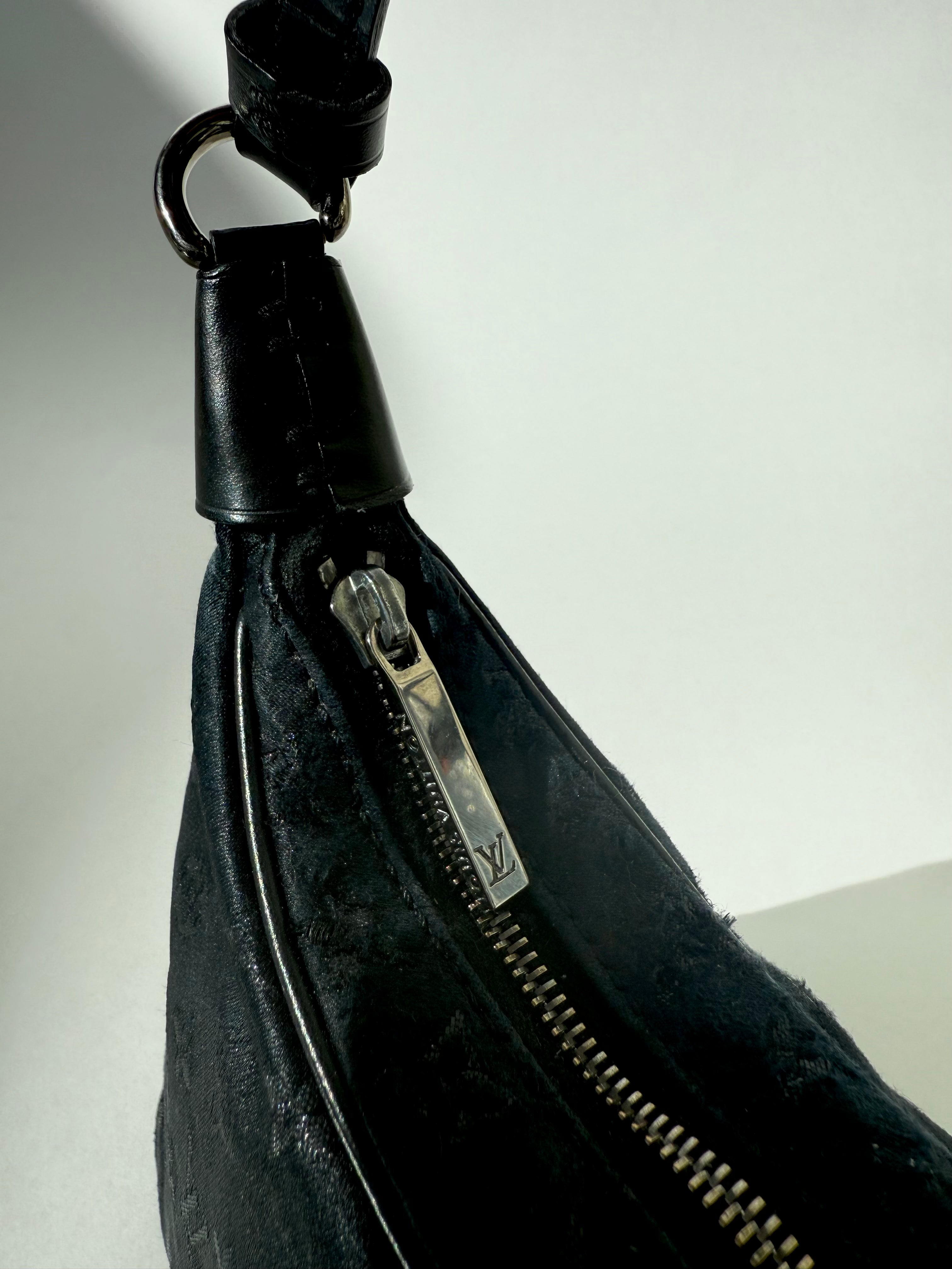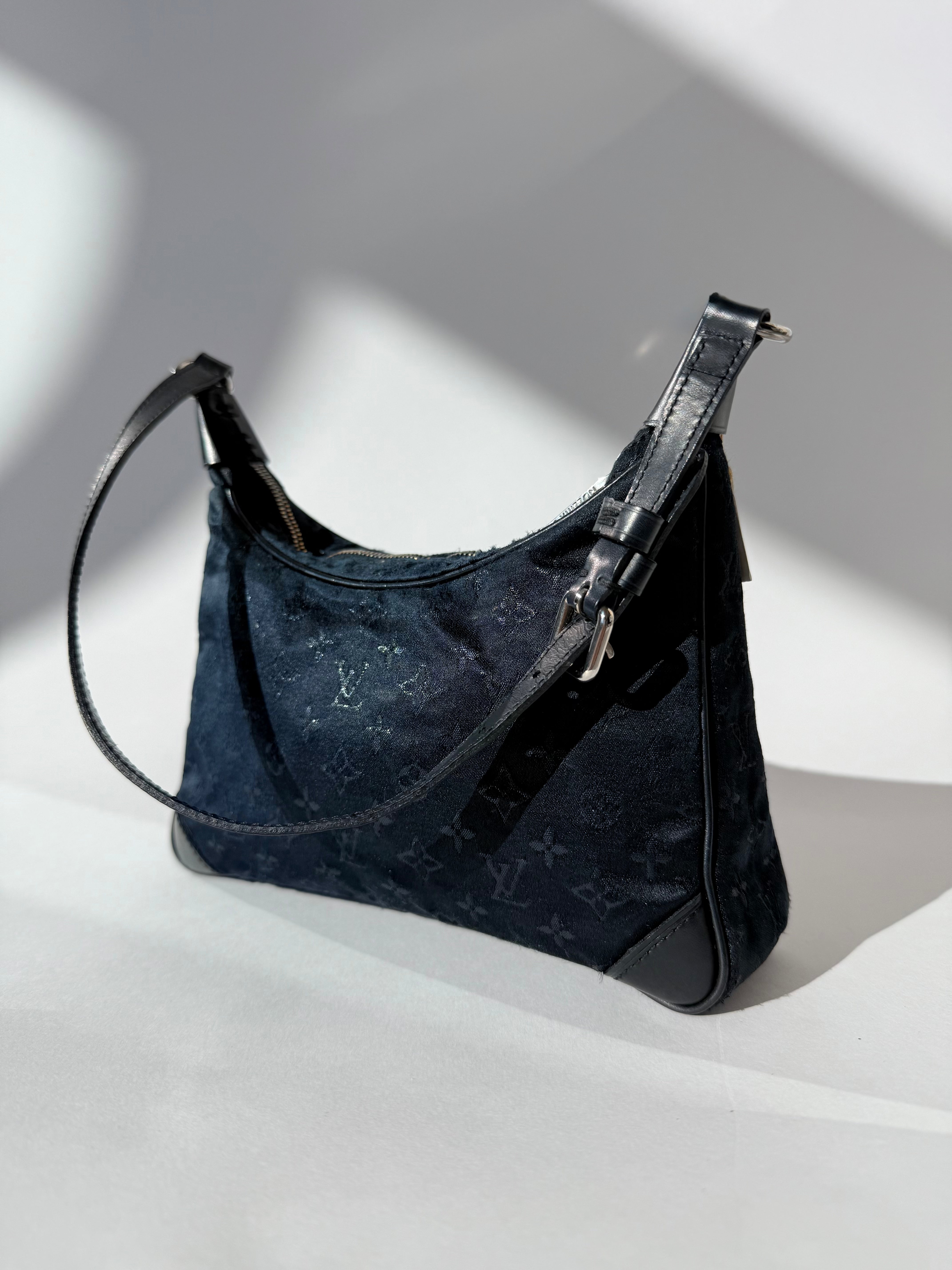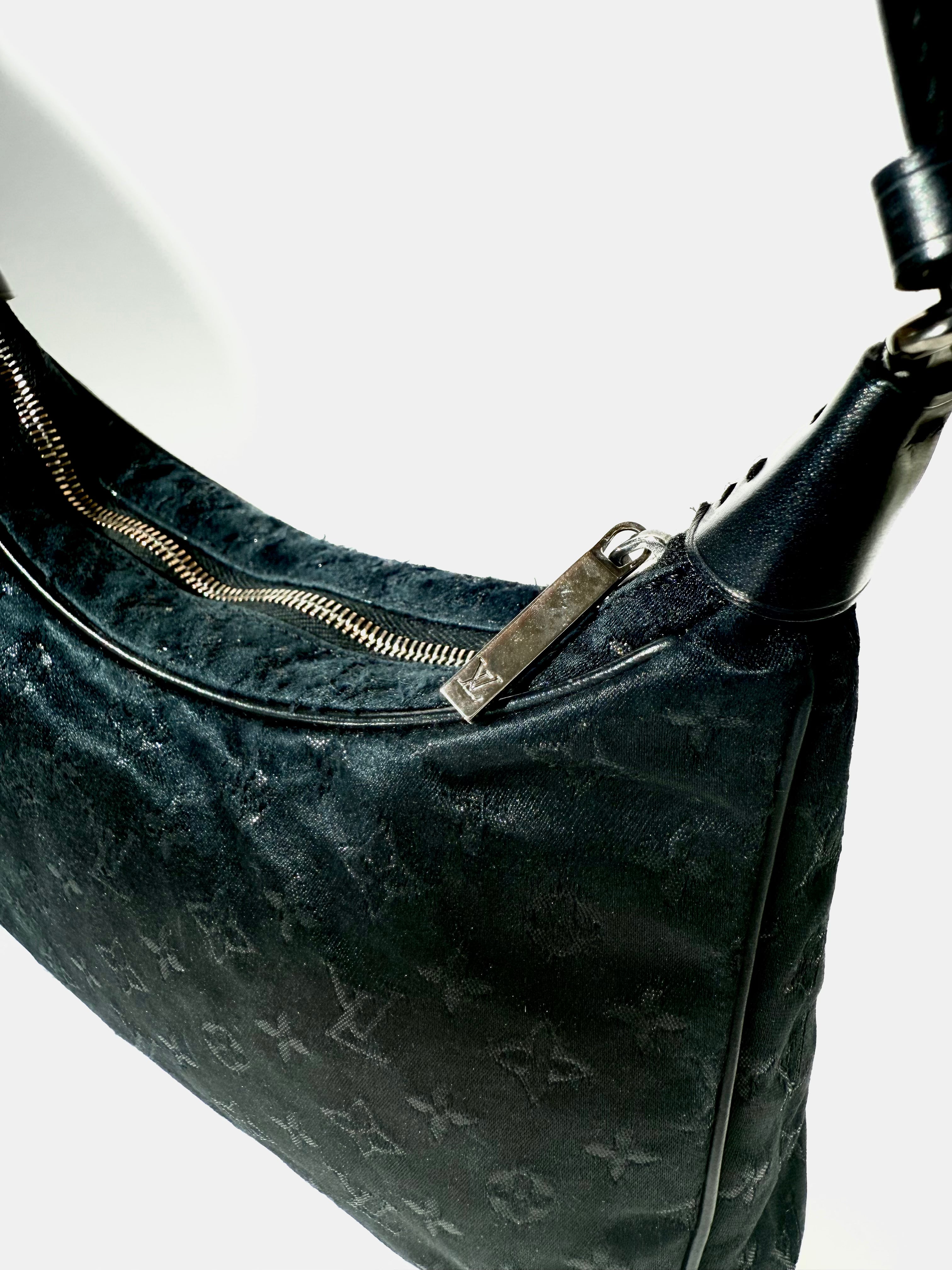 LOUIS VUITTON Vintage LV Monogram Little Boulogne Mini Shoulder Bag Black Satin
