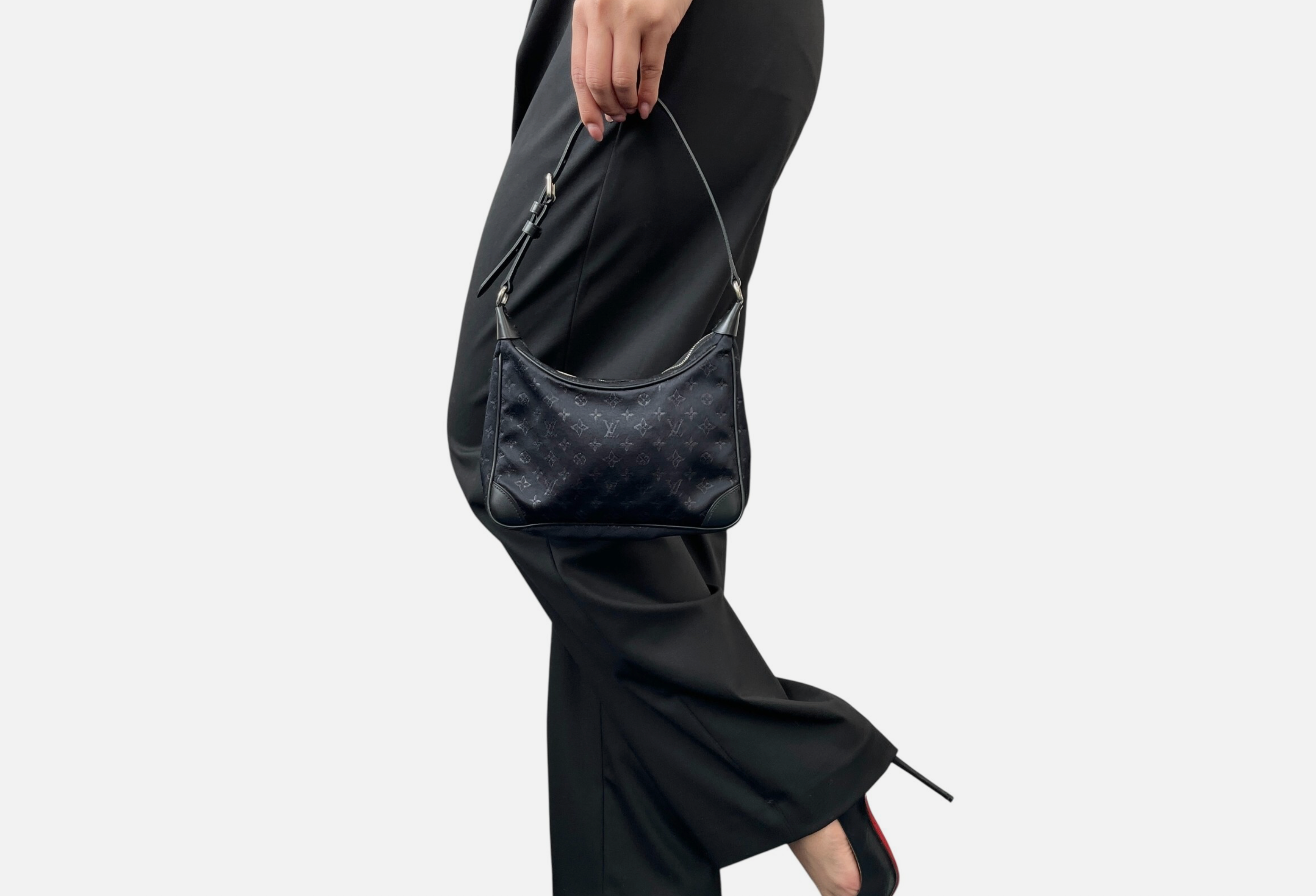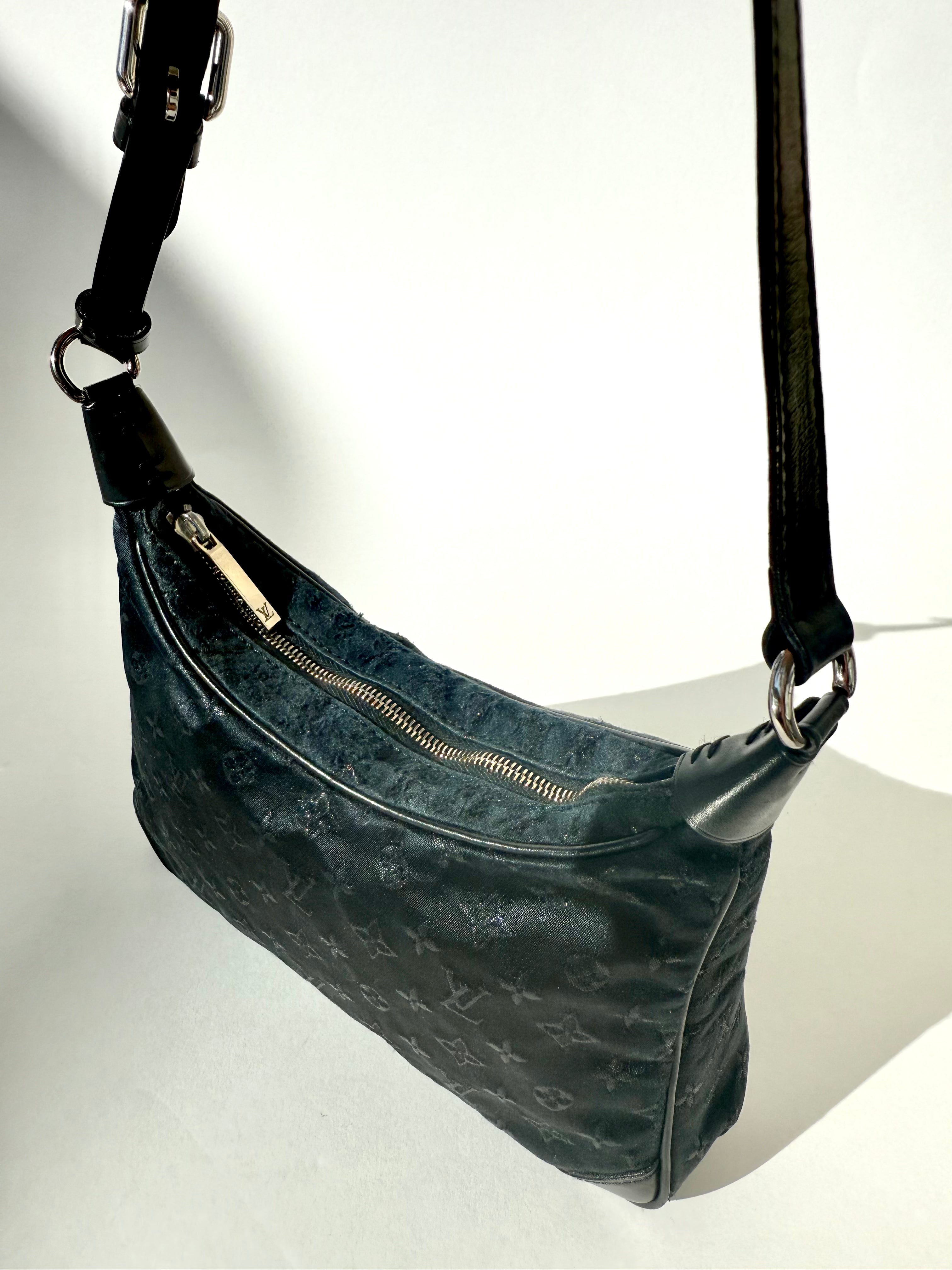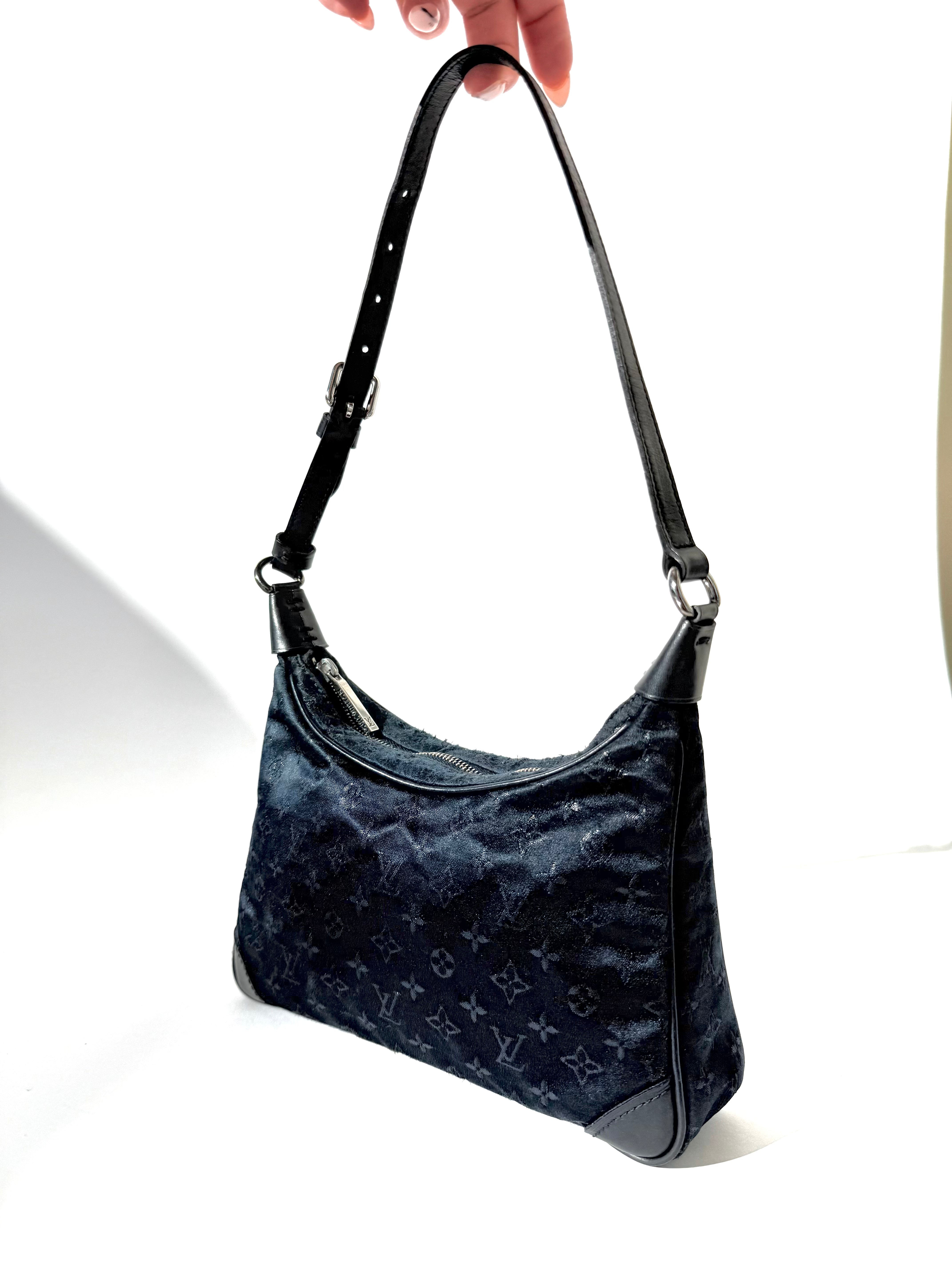 LOUIS VUITTON Vintage LV Monogram Little Boulogne Mini Shoulder Bag Black Satin