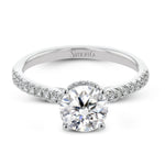 This stunning ring features a hidden halo design with a ring of diamonds underneath the center stone as well as along the shank.