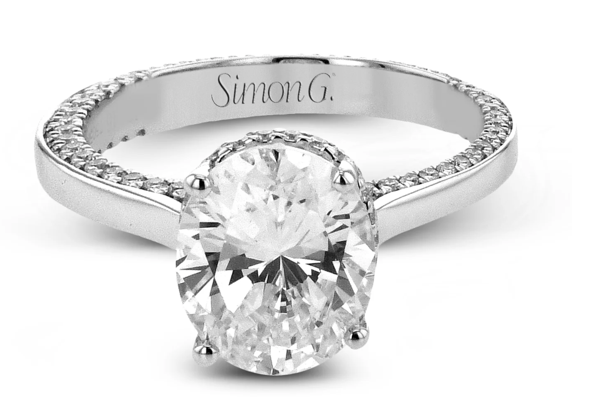 Oval-cut Hidden Halo Engagement Ring in 18k Gold with Diamonds