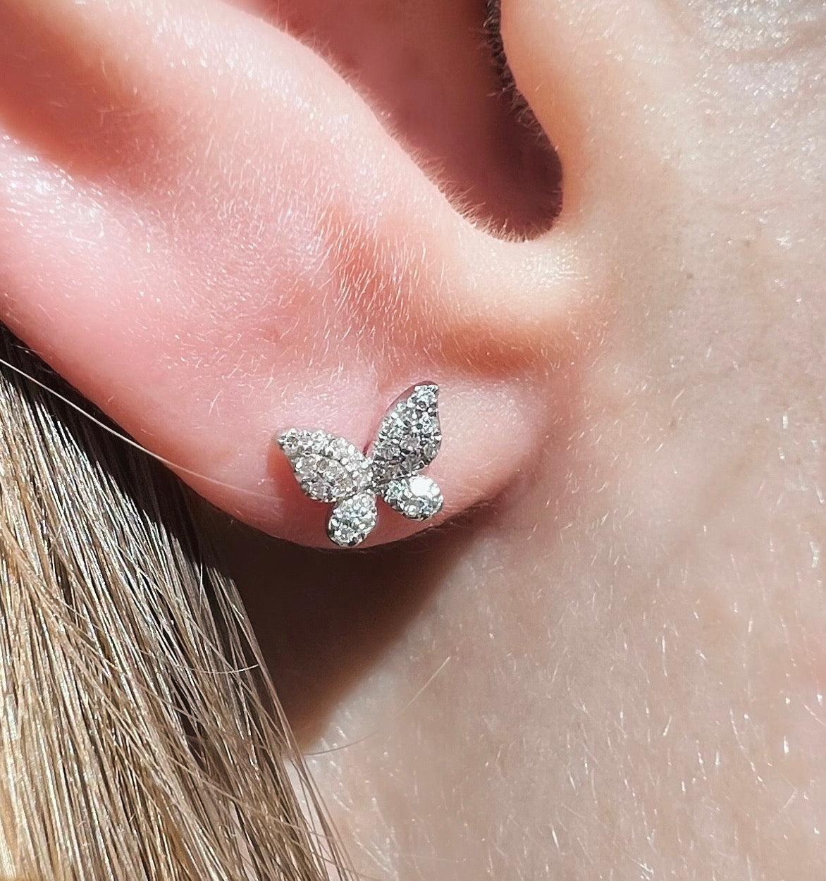 14KT White Gold Diamond Butterfly Stud Earrings – Elegant & Timeless Sparkle