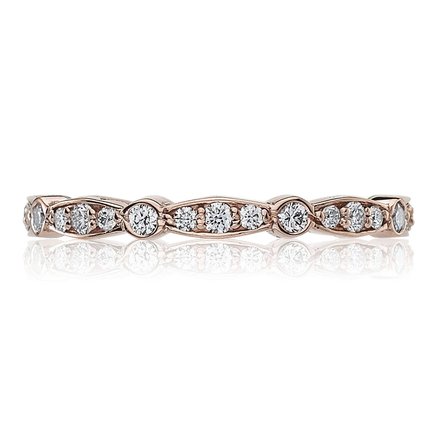 This high polished band takes a unique shape with diamond details and signature crescent designs decorate the sides for a distinctly gorgeous, simply stunning look.