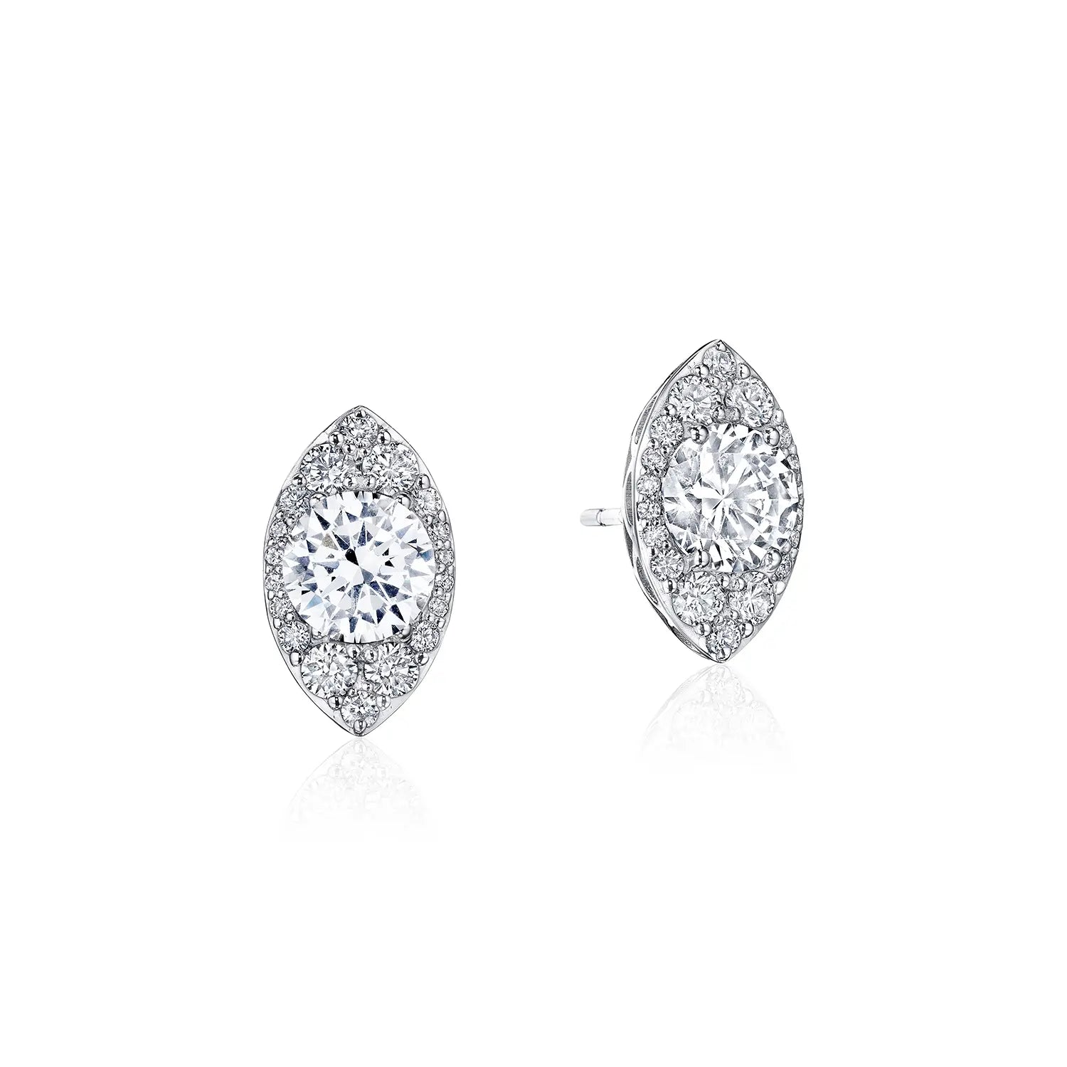 A marquise bloom of spotlight diamonds transforms the center diamond into a shape totally its own, while adding clarifying depth and dimension. These striking earrings are classics with an exciting twist. Center diamond sold separately.