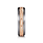 Mens Alternative 6mm Beveled Tantalum and 14K Rose Gold Band
