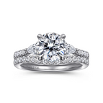 Monty - 14K White Gold Round Three Stone Lotus Diamond Engagement Ring In-Store