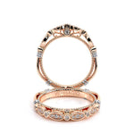 PARISIAN-100W wedding band carries through the beautiful scalloped bezel set diamonds on the band adorned with rose gold Parisian lace and Timeless wraps details to compliment your Verragio engagement ring perfectly. **Note: +$400 for Lace Beading or Bo