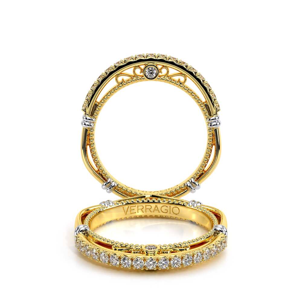 PARISIAN-120W is our classic straight wedding band that is decorated with Parisian Lace Verragio signature beading and our Timeless wraps that will perfectly compliment any Parisian collection engagement ring. **Note: +$400 for Lace Beading or Both in a