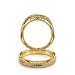 Parisian-129W is a beautifully handcrafted twisted style wedding band that features the Parisian lace detail our Verragio Signature beading and rose gold Timeless wraps to create the perfect Parisian matching wedding set. **Note: +$400 for Lace Beading
