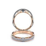 Parisian-129WSB straight wedding band featuring pave set diamonds and mirrors the handcrafted rose gold Parisian lace and Timeless wraps details of the engagement ring to create the perfectly matching set. **Note: +$400 for Lace Beading or Both in a dif