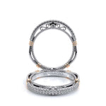 Parisian-129WSB straight wedding band featuring pave set diamonds and mirrors the handcrafted rose gold Parisian lace and Timeless wraps details of the engagement ring to create the perfectly matching set. **Note: +$400 for Lace Beading or Both in a dif