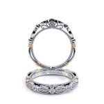 PARISIAN-136W wedding band carries through the beautiful scalloped bezel set diamonds on the band adorned with Parisian lace and Timeless wraps details to compliment your Verragio engagement ring perfectly. **Note: +$400 for Lace Beading or Both in a di