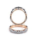 PARISIAN-151W wedding band carries the beautiful scalloped bezel set diamonds on the band adorned with rose gold Parisian lace and Timeless wraps details to compliment your Verragio engagement ring perfectly. **Note: +$400 for Lace Beading or Both in a