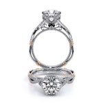 Parisian-153R is a uniquely designed engagement ring that showcases Verragio's diamond encrusted tiara that enhances a round diamond center. The details continue through with the addition of the Timeless wraps Parisian lace and Verragio signature beadin