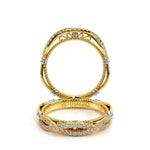 Parisian-153W wedding band is a beautifully handcrafted twisted style band that features the Parisian lace detail our Verragio Signature beading and rose gold Timeless wraps that is meant to compliment your Parisian engagement ring. **Note: +$400 for La