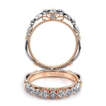 PARISIAN-154W is a vintage wedding band that features unique bezel set diamonds on the straight band adorned with Rose Gold Parisian lace and Timeless wraps to create perfect matching wedding set. **Note: +$400 for Lace Beading or Both in a different co