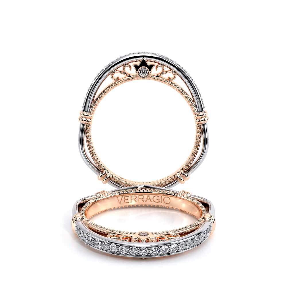 PARISIAN-157W straight wedding band featuring pave set diamonds handcrafted rose gold Parisian lace and Timeless wraps details of the engagement ring to create the perfect matching set. **Note: +$400 for Lace Beading or Both in a different color