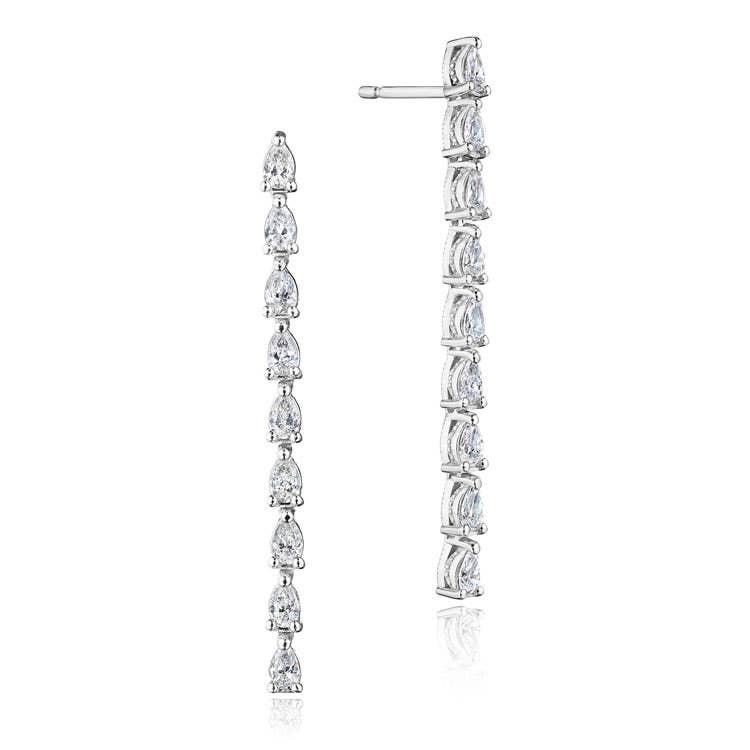 Pear cut diamonds set into 18k White Gold drape gracefully in delicate strings. Milgrain-accented TACORI Crescent detailing embellishes the silhouette.