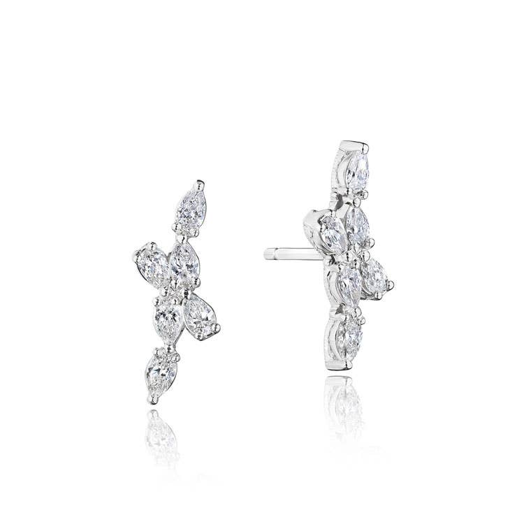 Passing strings of pear cut diamonds are set into 18k White Gold. Milgrain-accented TACORI Crescents decorate the silhouette.