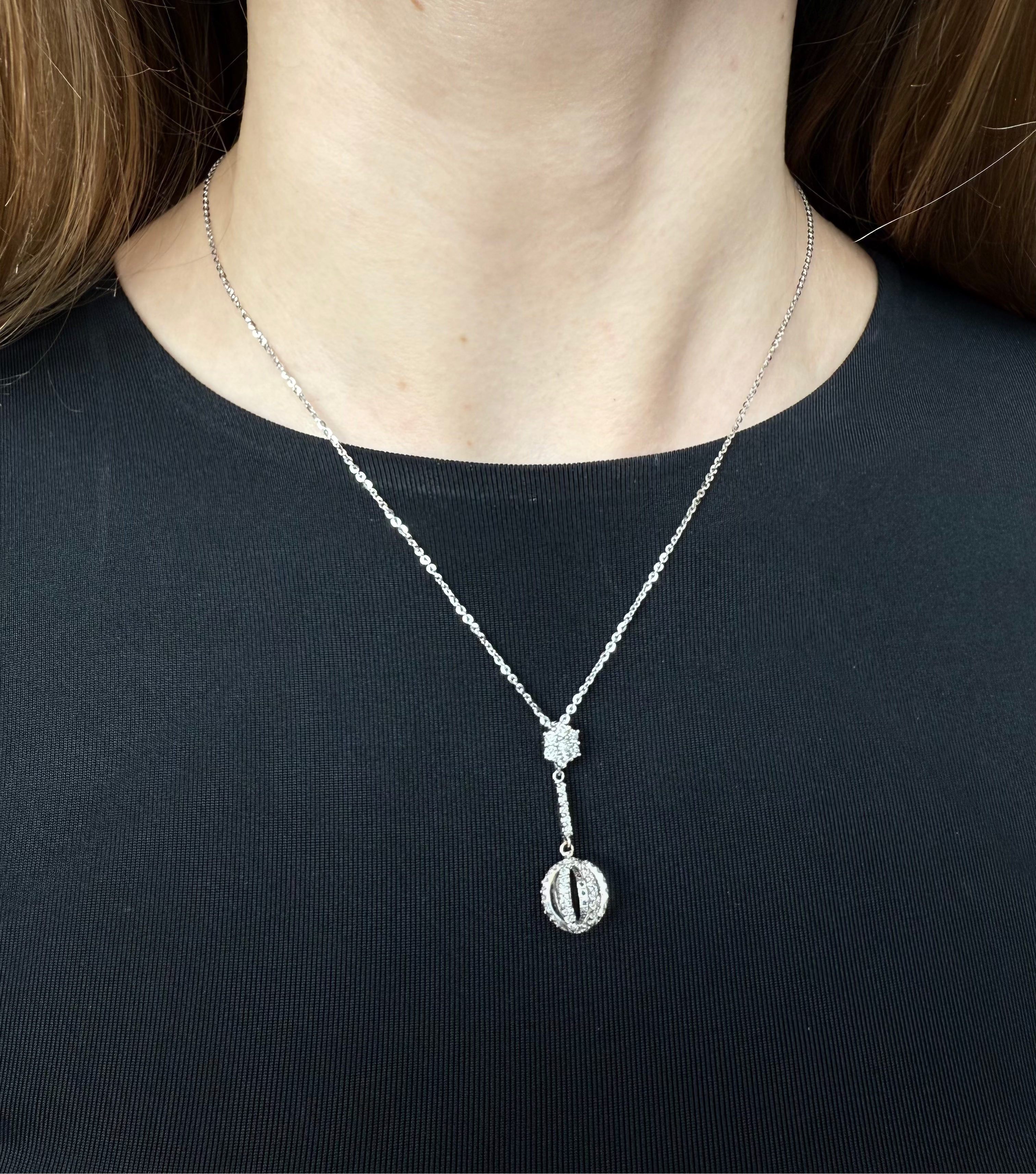 This Raddler Necklace is 14KT White Gold with stunning diamonds all around to create the perfect shimmer.
