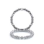 Renaissance-973W wedding band features signature wraps giving definition between round and kite set princess bezels. This unique wedding band is the perfect match to your Renaissance-973 engagement ring. It also makes a great addition to your stacking b