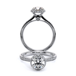 Renaissance-SLD302-XR is a classic engagement ring for your perfect Round brilliant stone enhanced by Verragio's shared prong Stardust halo. This setting also features an elegant round brilliant cut diamond band and refined profile complete with Verragio'