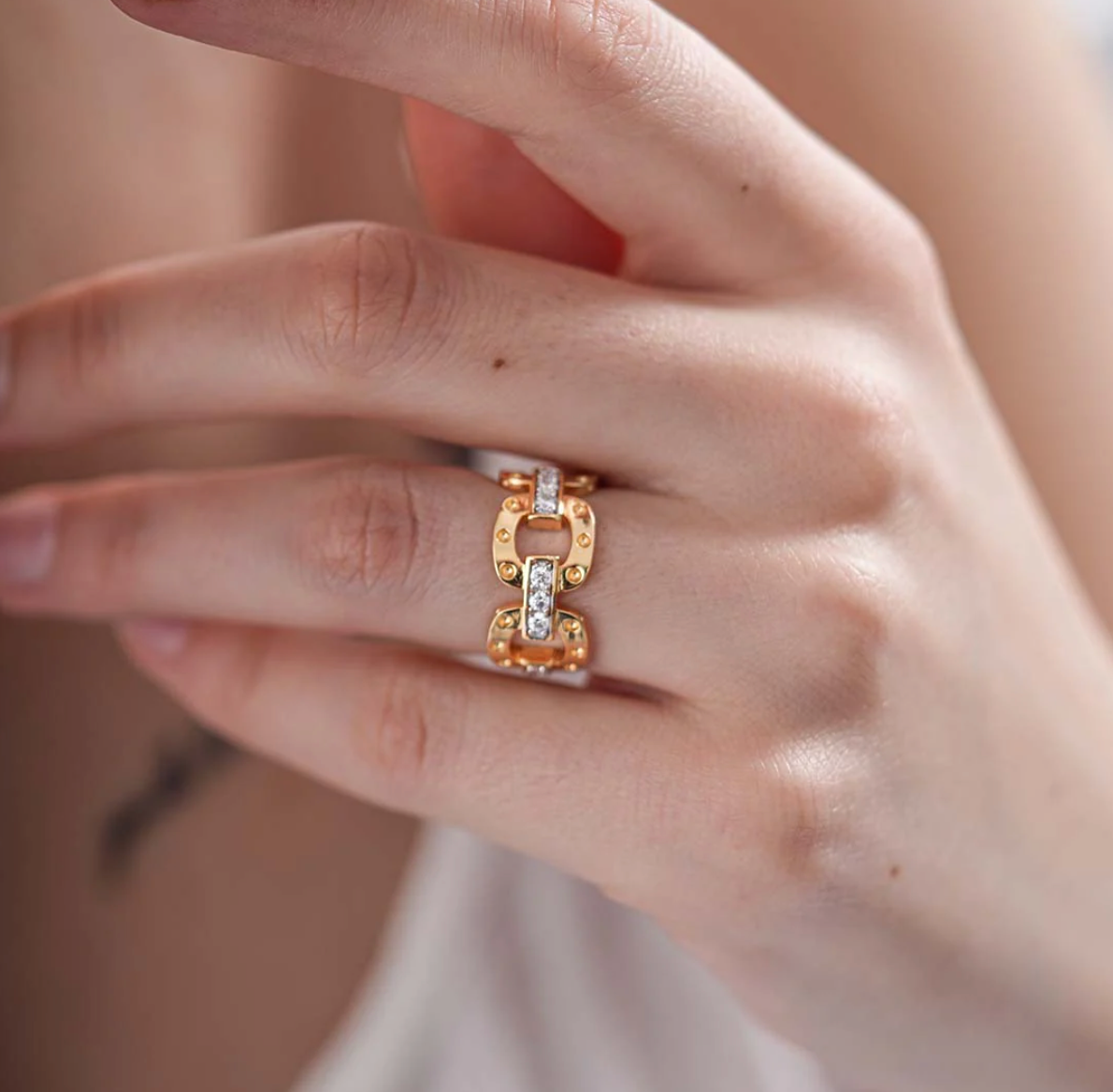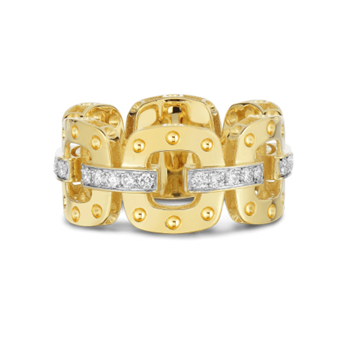 ROBERTO COIN POIS MOI LINK RING WITH DIAMONDS YELLOW GOLD