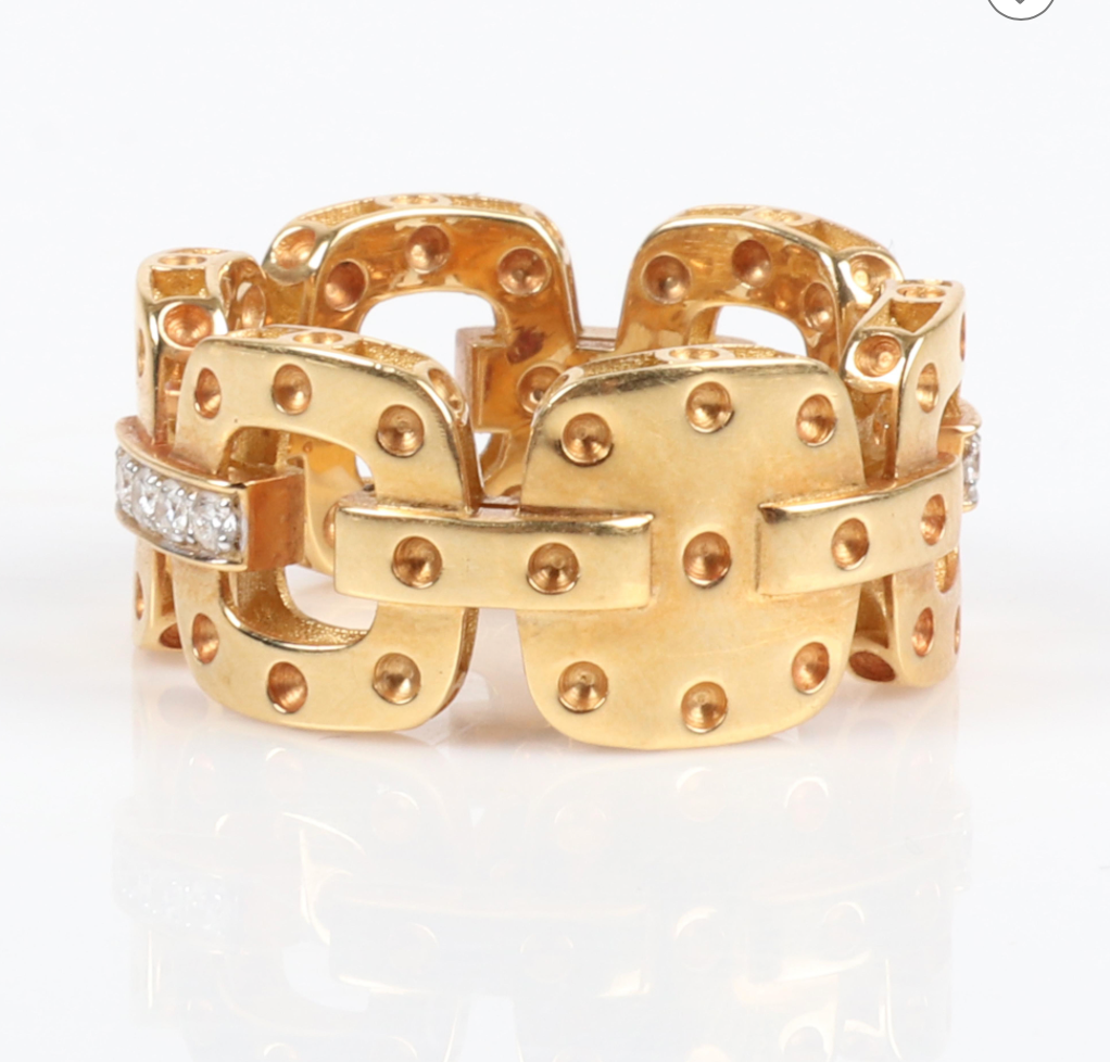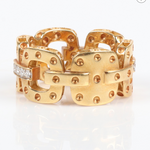 Roberto Coin Pois Moi 18K Yellow Gold Designer Link Band Ring With Diamonds, 5.35dwt. Size 6 1/2, 1/4"W