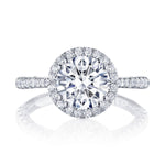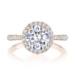 A diamond-intense Petite Crescent foundation with a lace-like Dantela crown and round bloom. Graduating diamonds on the band taper towards the center, adding the perfect touch of classic elegance.