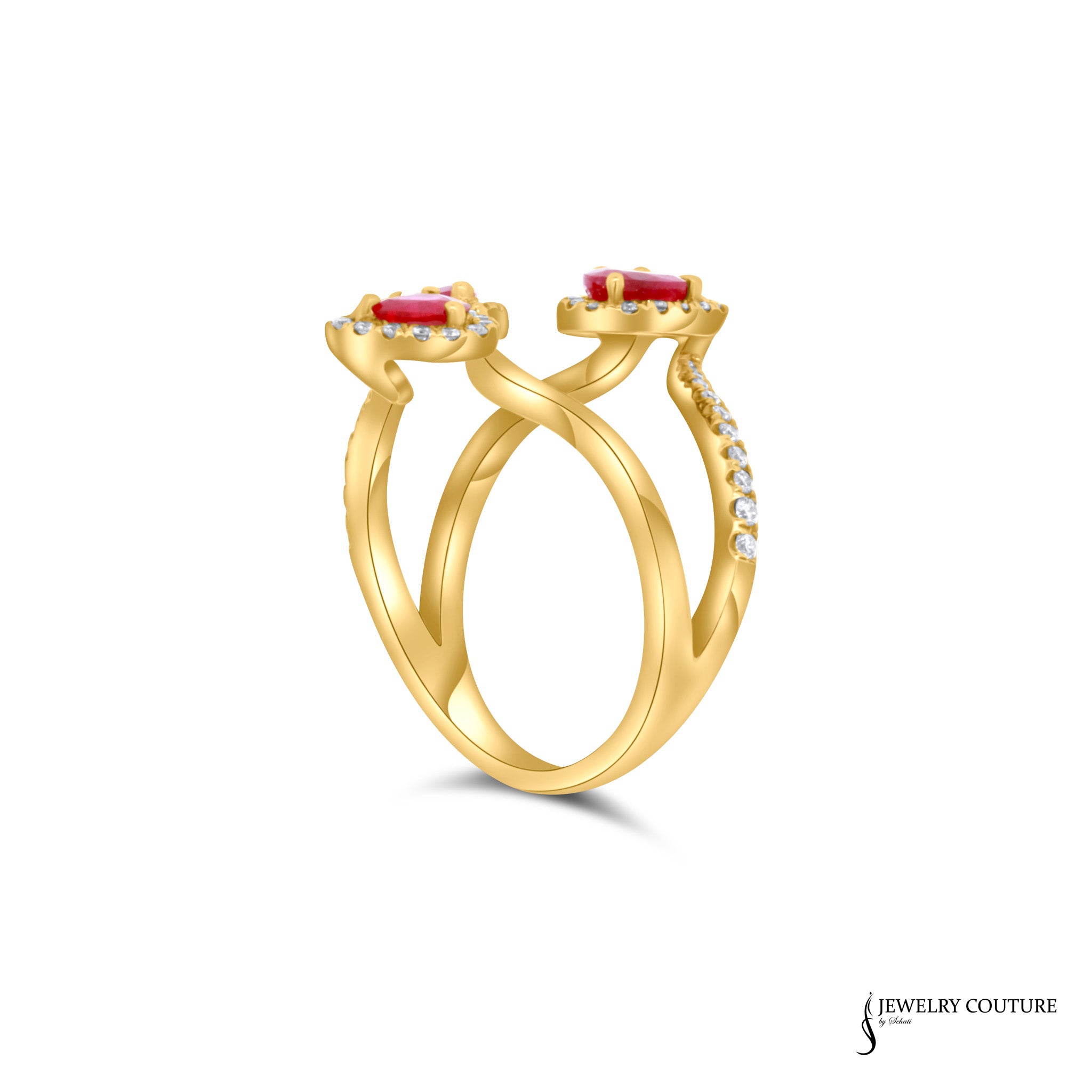 Salvia - 14KT Yellow Gold Ruby Ring with Diamonds