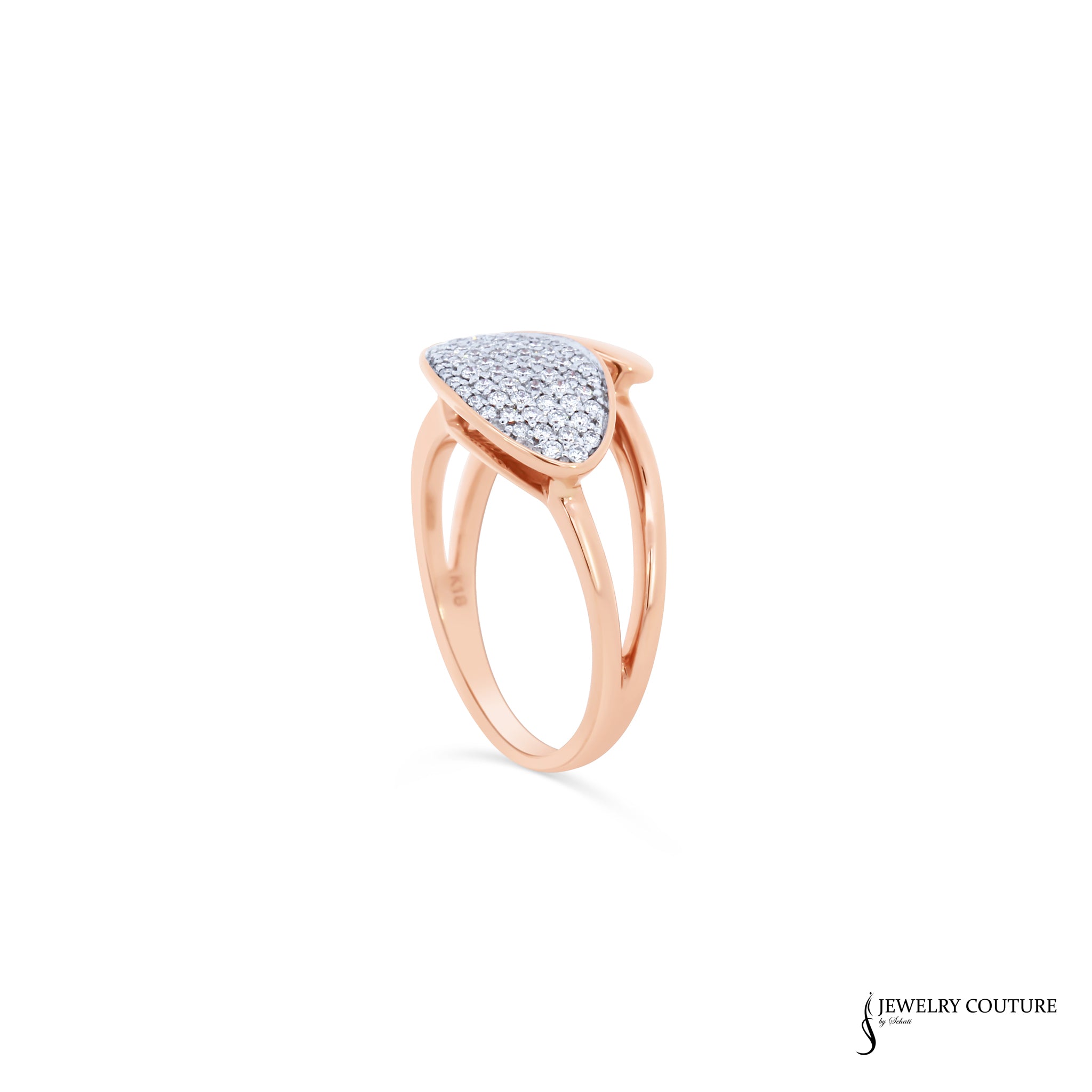 Breathtaking 18KT Rose Gold Diamond Ring, featuring a sleek shield-inspired design set with 0.30CT Total Weight of brilliant diamonds. Its modern elegance and artistic silhouette make it the perfect accessory for adding refined luxury to any outfit—whether worn alone or stacked with your favorites.