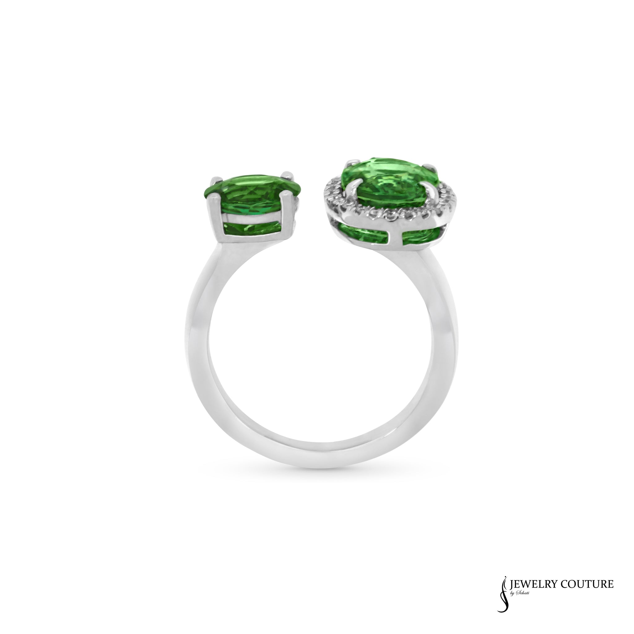 This 14KT White Gold Peridot Toi et Moi Ring is the perfect addition to any jewelry collection. Made with 4.03CT Peridot stones set in 14KT White Gold, this ring offers a touch of elegance and sophistication. Show off your unique sense of style with this beautiful ring.