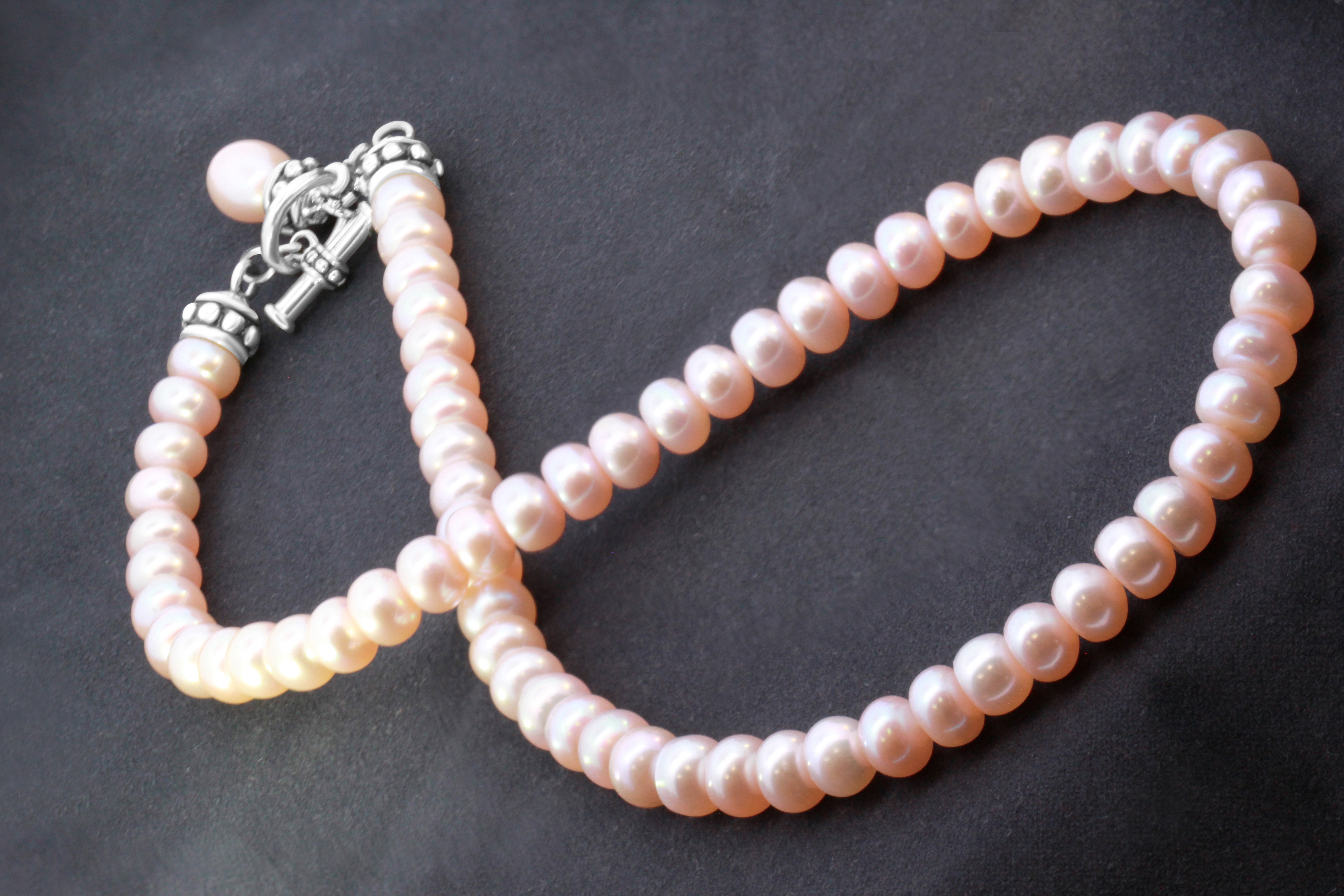 Elevate your style with this stunning 18-inch freshwater pink pearl necklace, hand-strung with luminous near-round pearls and finished with an ornate sterling silver toggle clasp for a secure and elegant closure. Each natural blush-toned pearl radiates soft iridescence, offering timeless sophistication perfect for weddings, anniversaries, or everyday luxury.