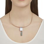 - The futuristic design combines sparkling full-cut crystals soft pave and shiny rose-gold PVD metal.