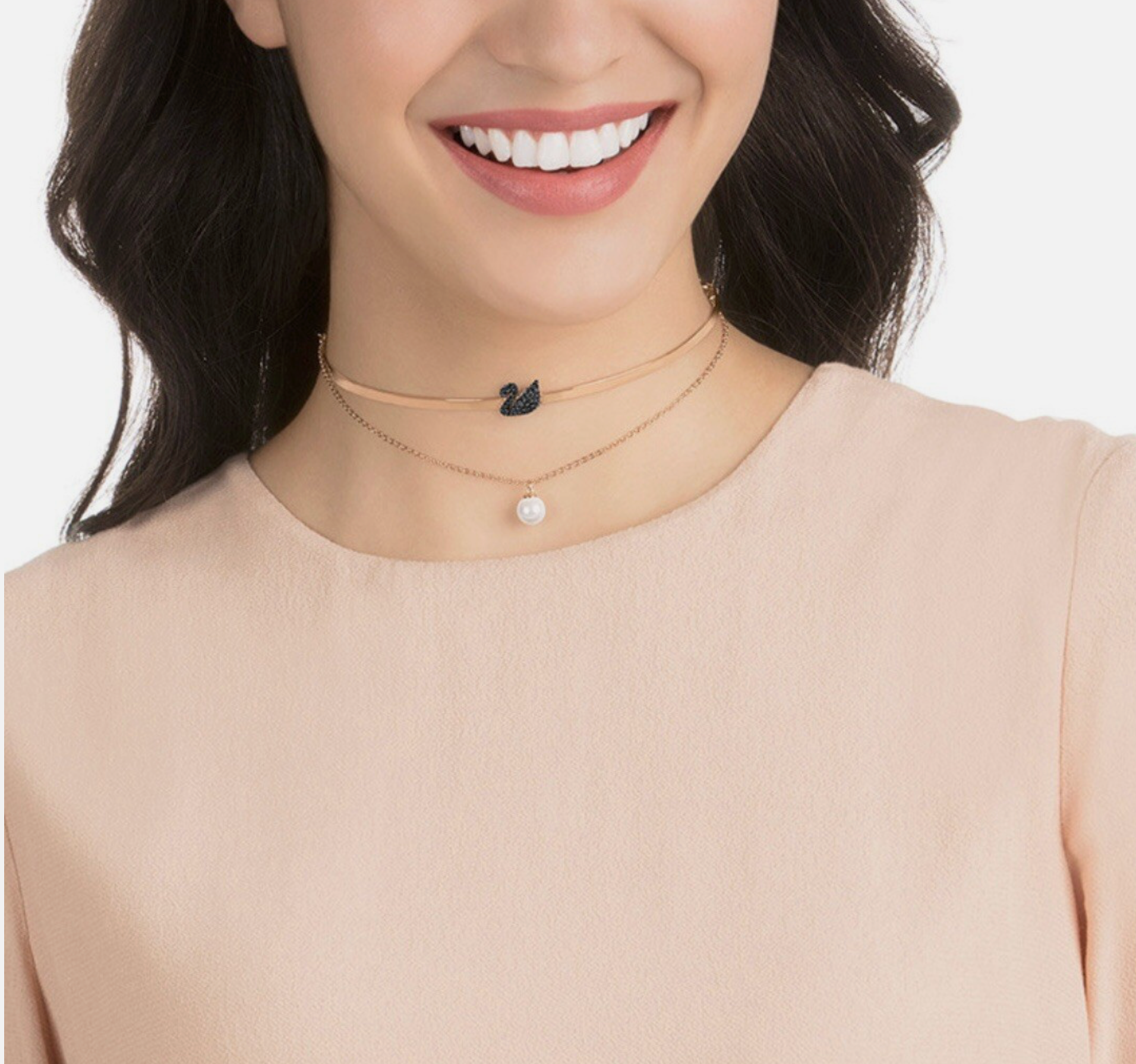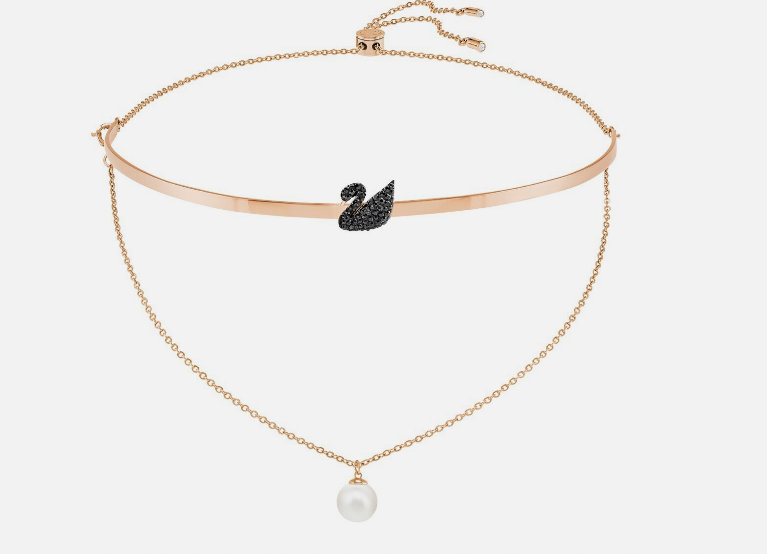 A modern take on our iconic motif with this fashion-forward choker. Delicately crafted with black crystal Pointiage, the swan sits on a rose gold-plated metal choker, which is attached to a dangling chain featuring a shining Crystal Pearl. Classic elegance with gothic edge. Please note that this necklace cannot be returned once purchased.