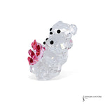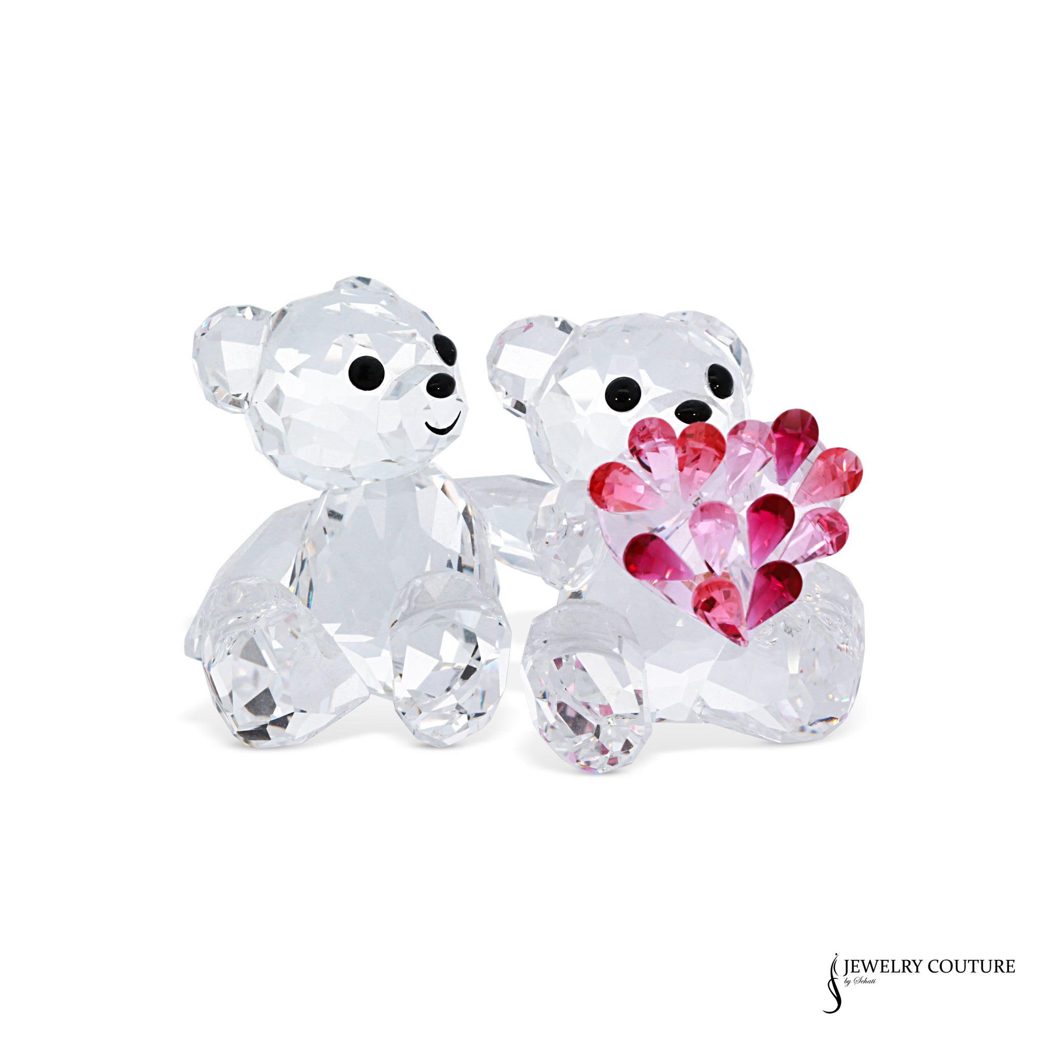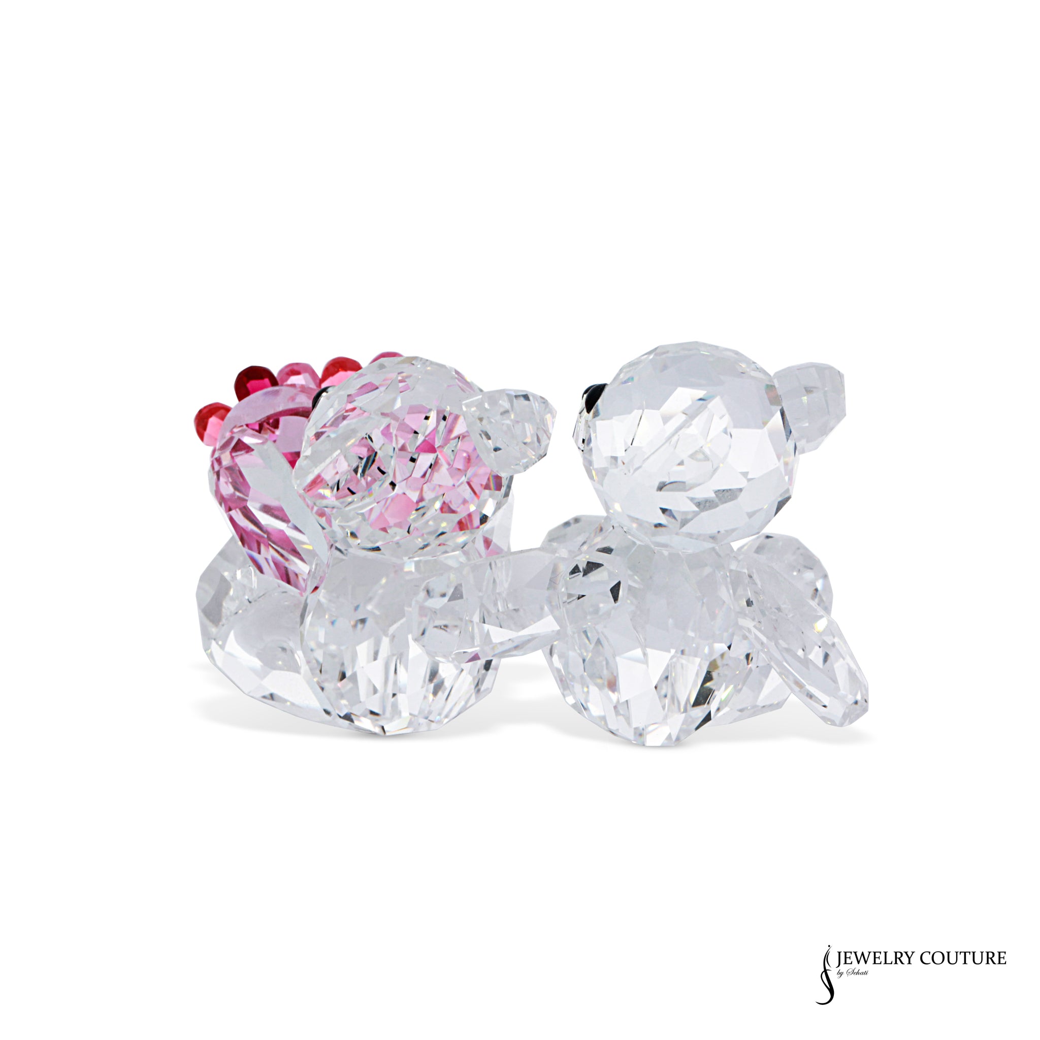 Celebrate love and togetherness with this enchanting crystal teddy bear duo figurine. Expertly crafted from high-quality faceted crystal, these two adorable teddy bears sit side by side, radiating joy and affection. One bear holds a vibrant bouquet of sparkling pink heart-shaped crystals, adding a romantic and playful touch to the design.
