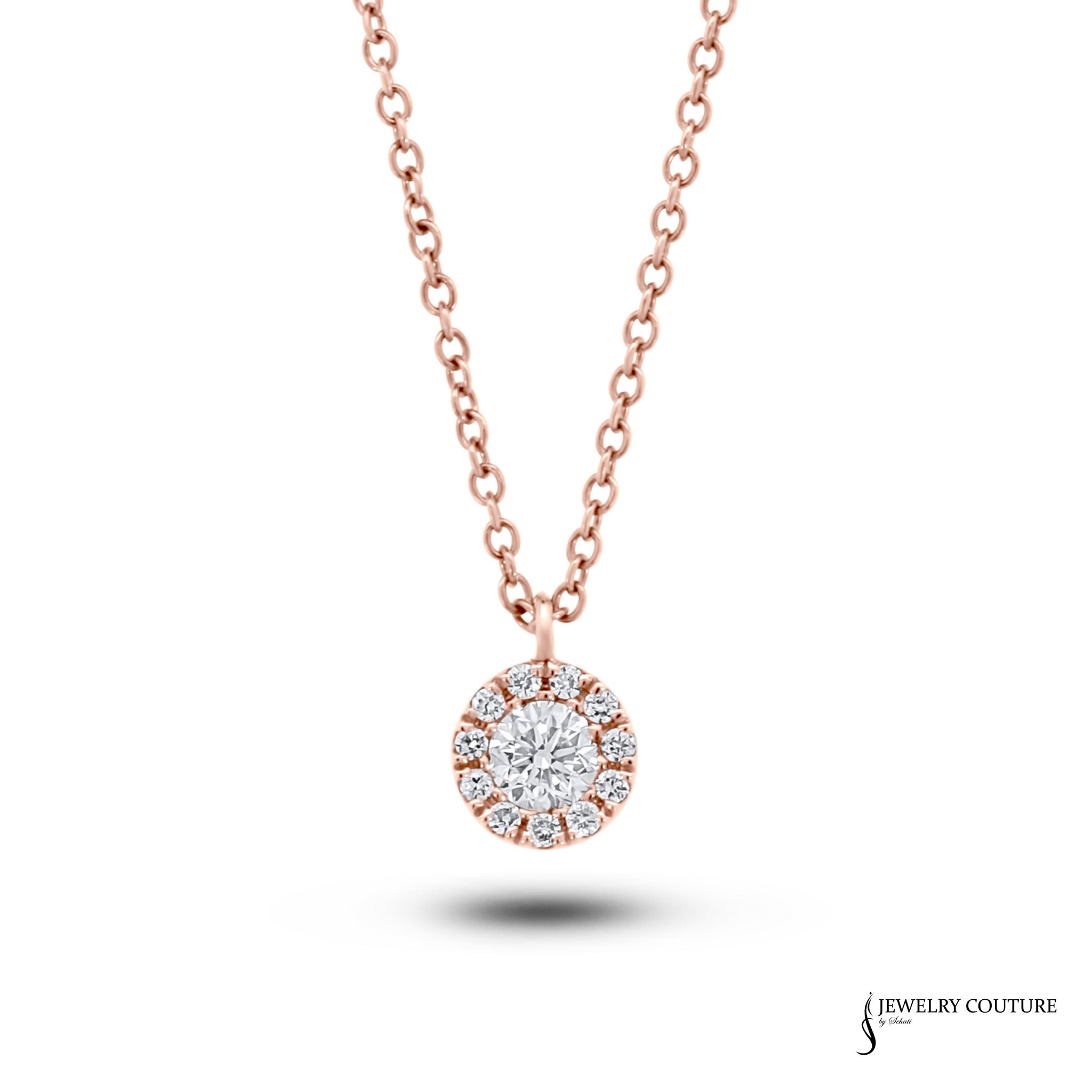 Pink and Diamonds? Name a better duo. This 14KT Rose gold necklace adorned with 0.16CT total weight diamonds is a great addition to a jewelry collection.