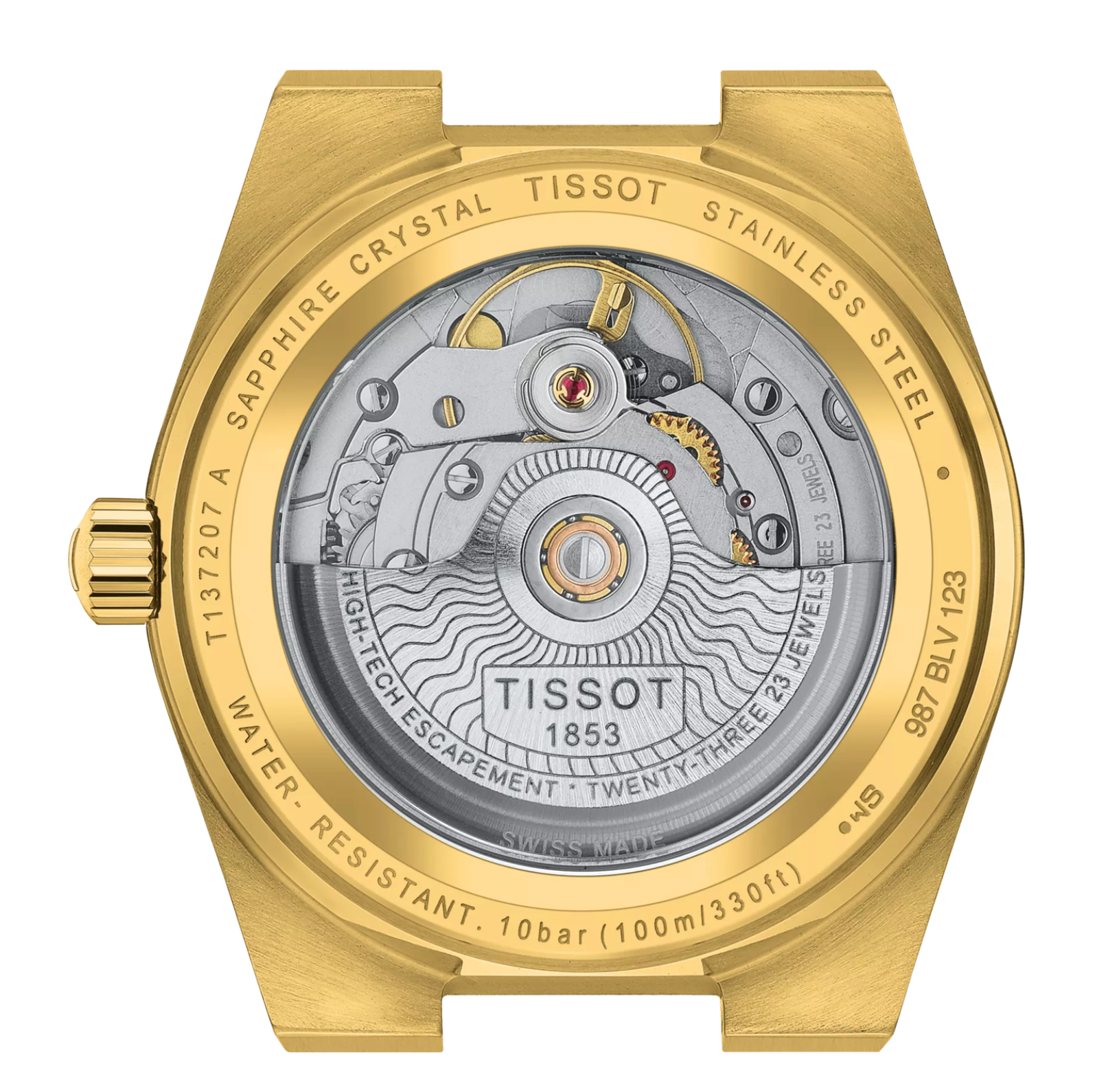 - 316L stainless steel case with yellow gold PVD coating
