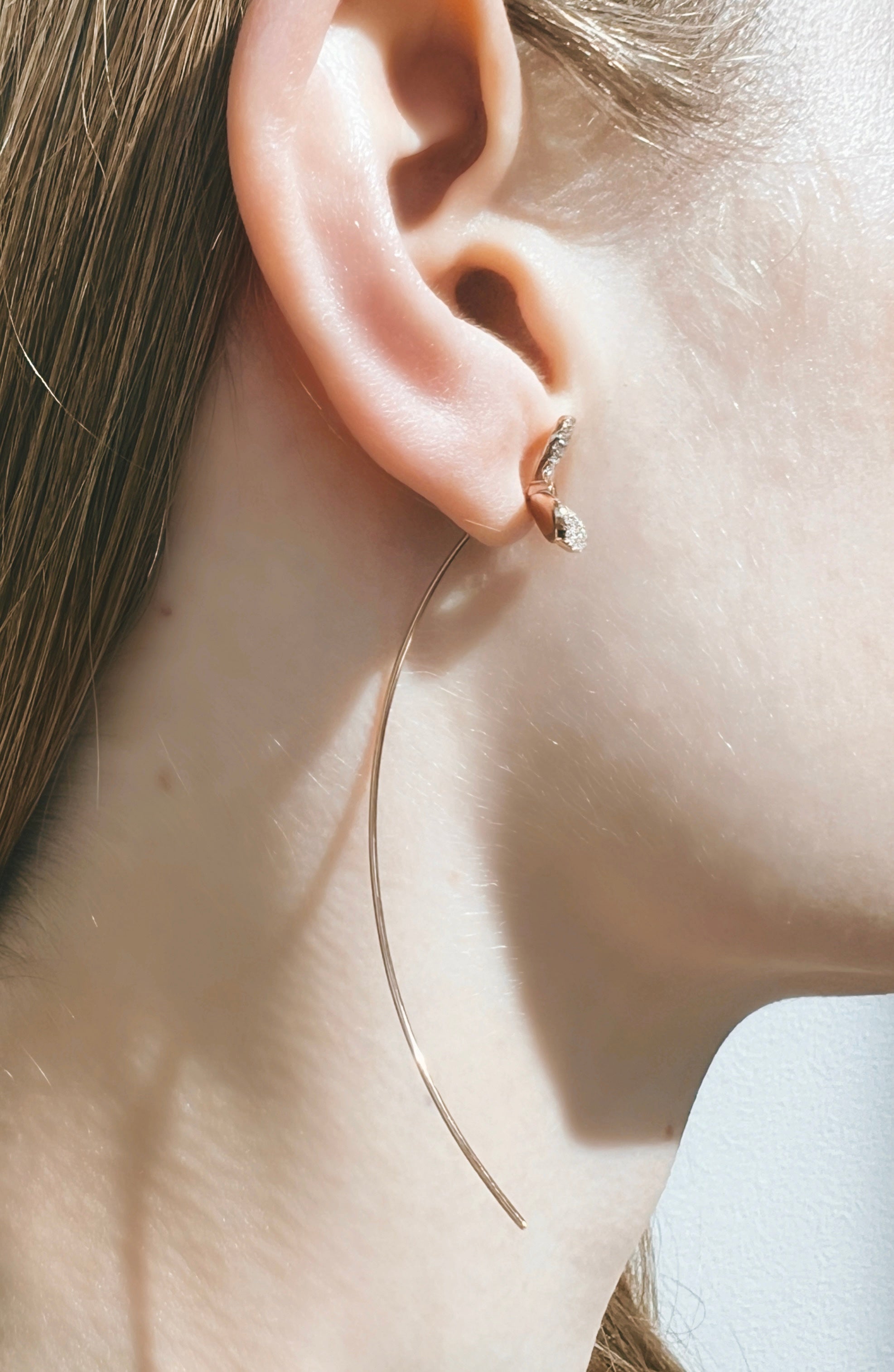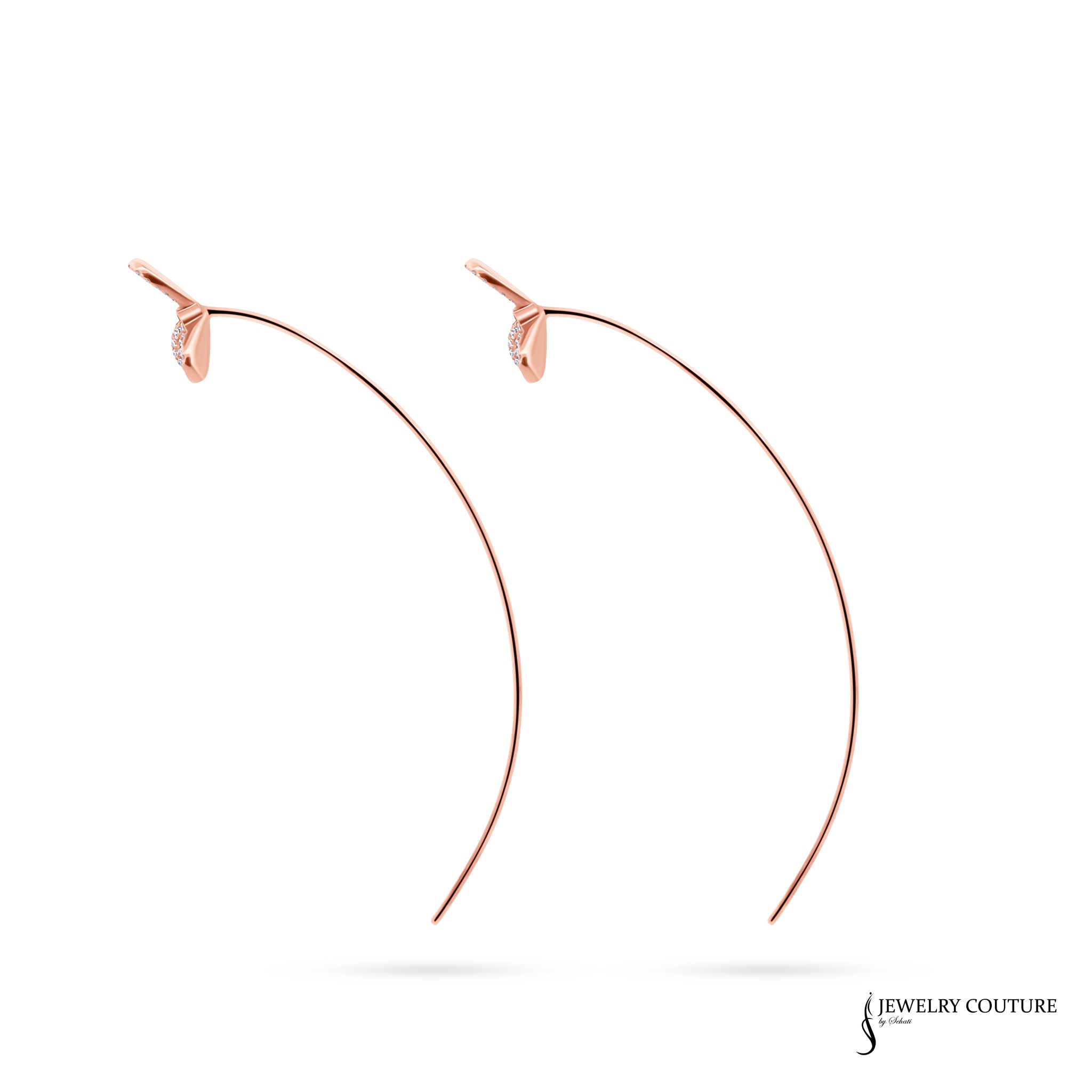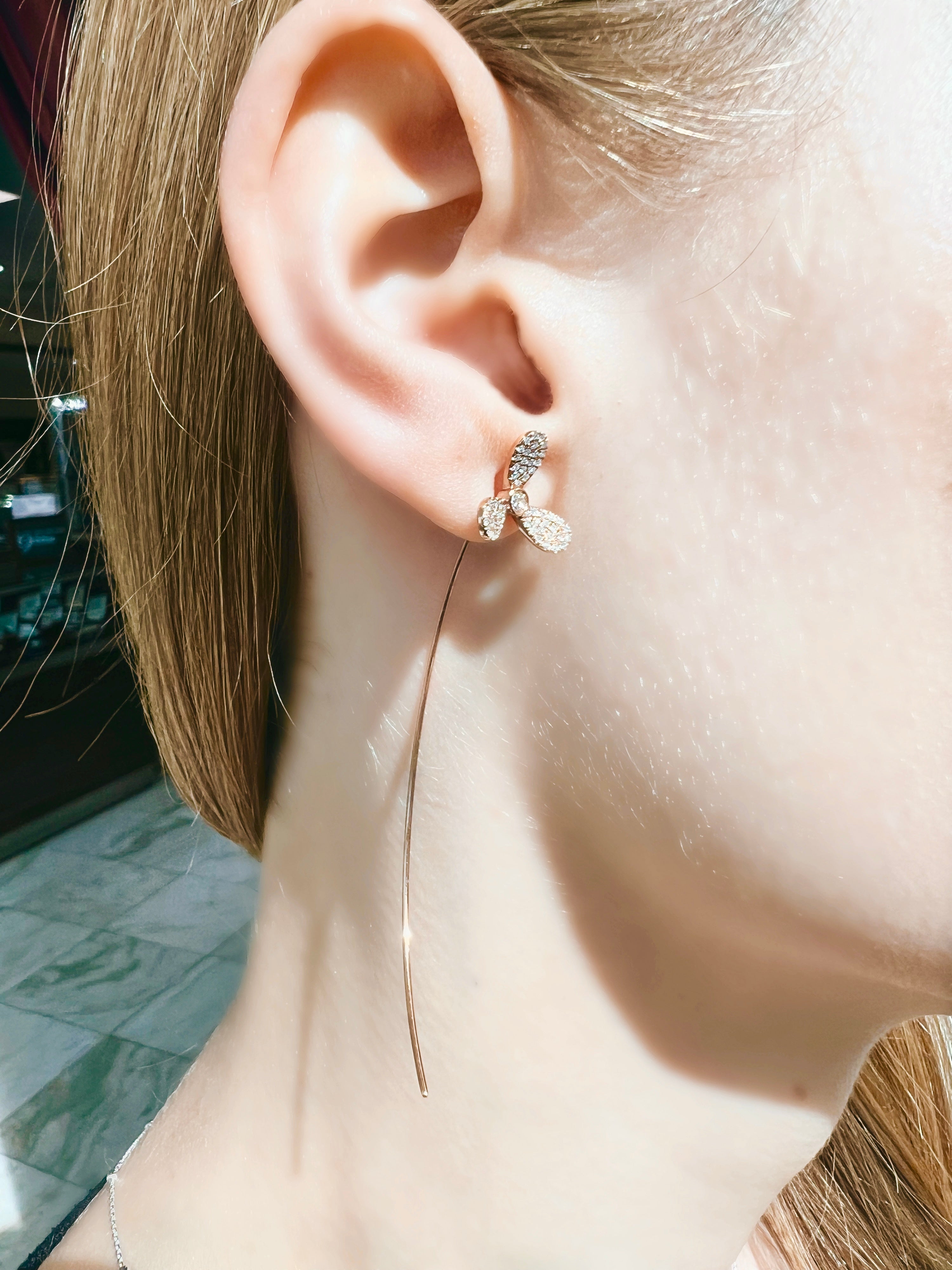 14KT Rose Gold Diamond Threader Earrings – Elegant Floral Drop Design