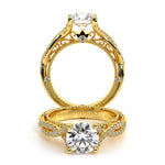 VENETIAN-5003 engagement ring from the Venetian Collection features round brilliant-cut diamonds pave set in a twisted shank enhancing the center stone giving an illusion of a floating diamond. Our beautiful Venetian lace and Verragio signature beading co