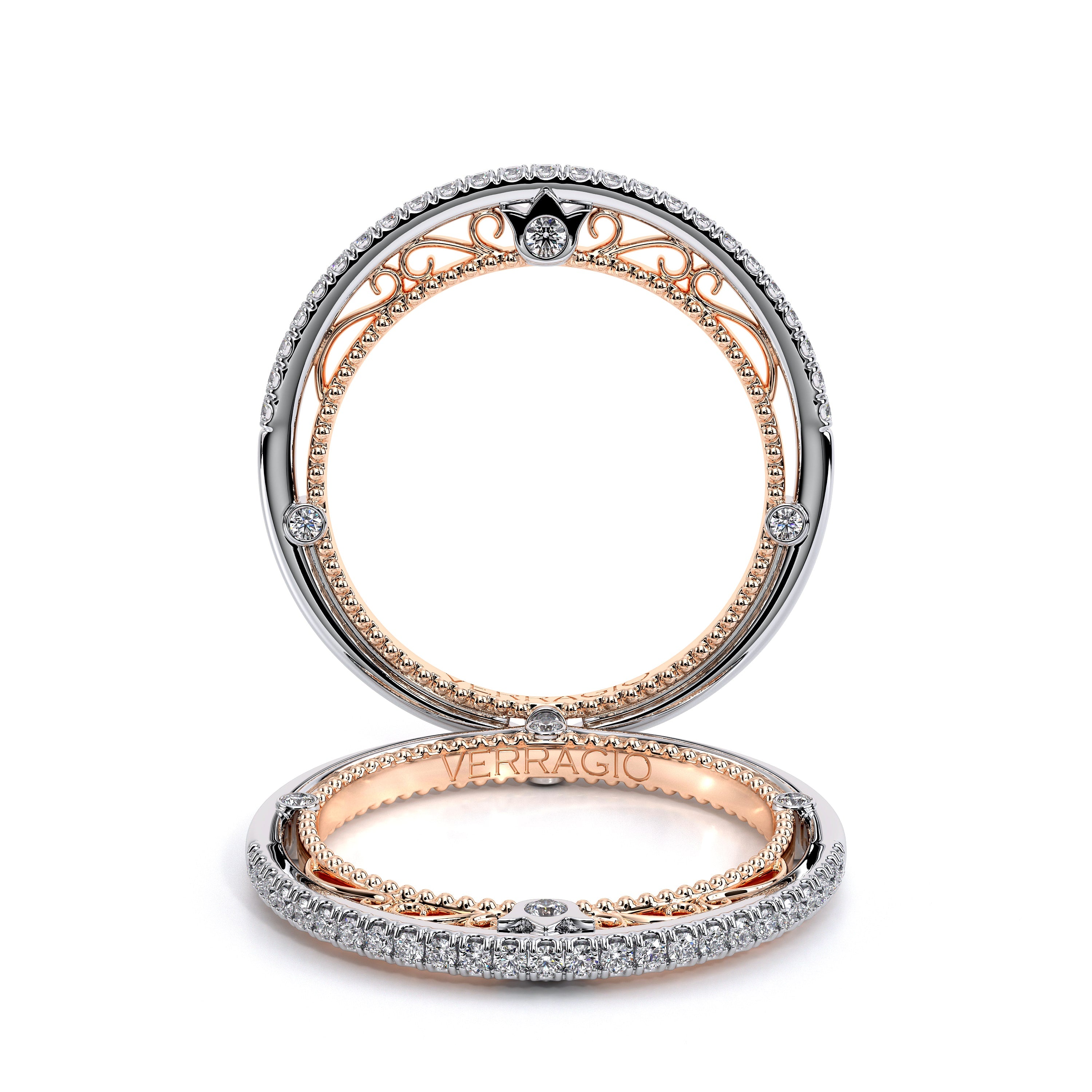 VENETIAN-5003WSB from the Venetian Collection features an intricate straight band set with round brilliant diamonds. The inner profile showcases a beautiful handcrafted lace and our signature beading. Make it yours in two-tone or all one color to match yo