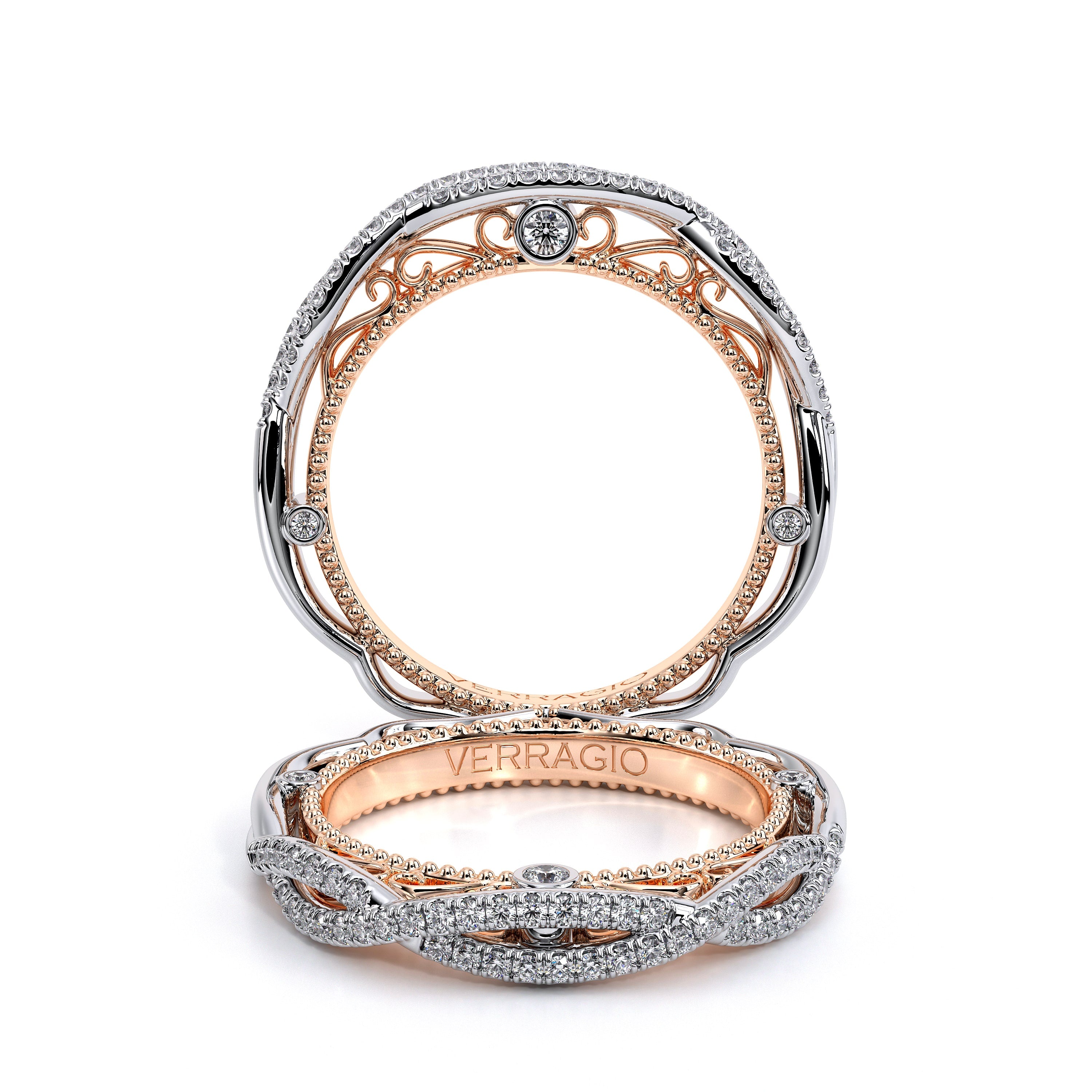VENETIAN-5013W from the Venetian Collection features a beautiful twisted band encrusted with round brilliant diamonds. The inner profile is laced with three bezel set round diamonds on each side infused seamlessly with our signature beading. Compliment yo