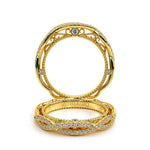 VENETIAN-5013W from the Venetian Collection features a beautiful twisted band encrusted with round brilliant diamonds. The inner profile is laced with three bezel set round diamonds on each side infused seamlessly with our signature beading. Compliment yo