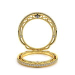 VENETIAN-5013WSB from the Venetian Collection features an intricate straight wedding band designed with round brilliant diamonds. The inlay is beautifully laced with three bezel set round diamonds on each side along with our signature beading. Choose to g