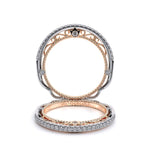 VENETIAN-5078WSB from the Venetian Collection features a delicate straight wedding band with round brilliant diamonds. The inside profile laced with bezel set diamonds on each side is infused symmetrically with our signature beading to match your engageme