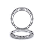 VENETIAN-5051WSB from the Venetian Collection features a delicate straight band set with round brilliant diamonds. The inside profile showcases three bezel set round diamonds on each side infused with lace and signature beading.