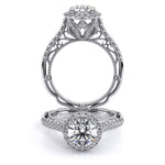 VENETIAN-5061R engagement ring from the Venetian Collection features a unique diamond adorned basket topped with a round single halo. A delicate straight shank encrusted with round brilliant diamonds completes this beautiful ornate design.